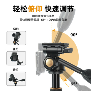 轻装 时代Q08手柄三维阻尼云台单反相机360度全景竖拍多角度专业摄影摄像三脚架小型液压云台演唱会防抖动云台