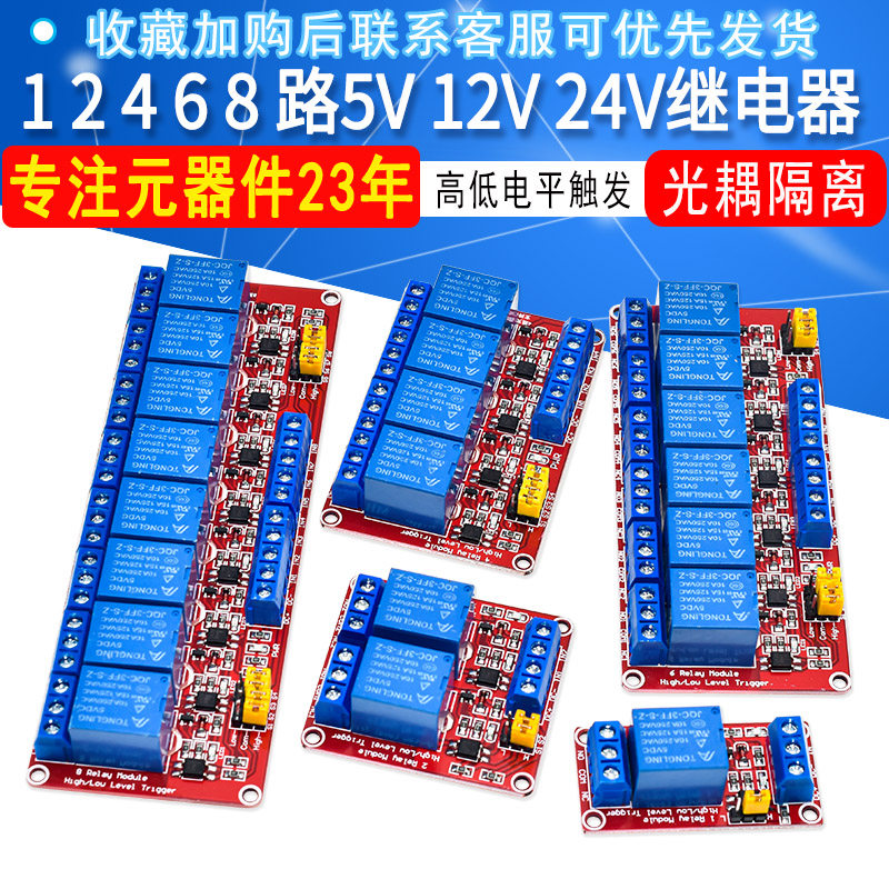 8路5V12V24V继电器模块带光耦隔离开发板支持高低电平触发