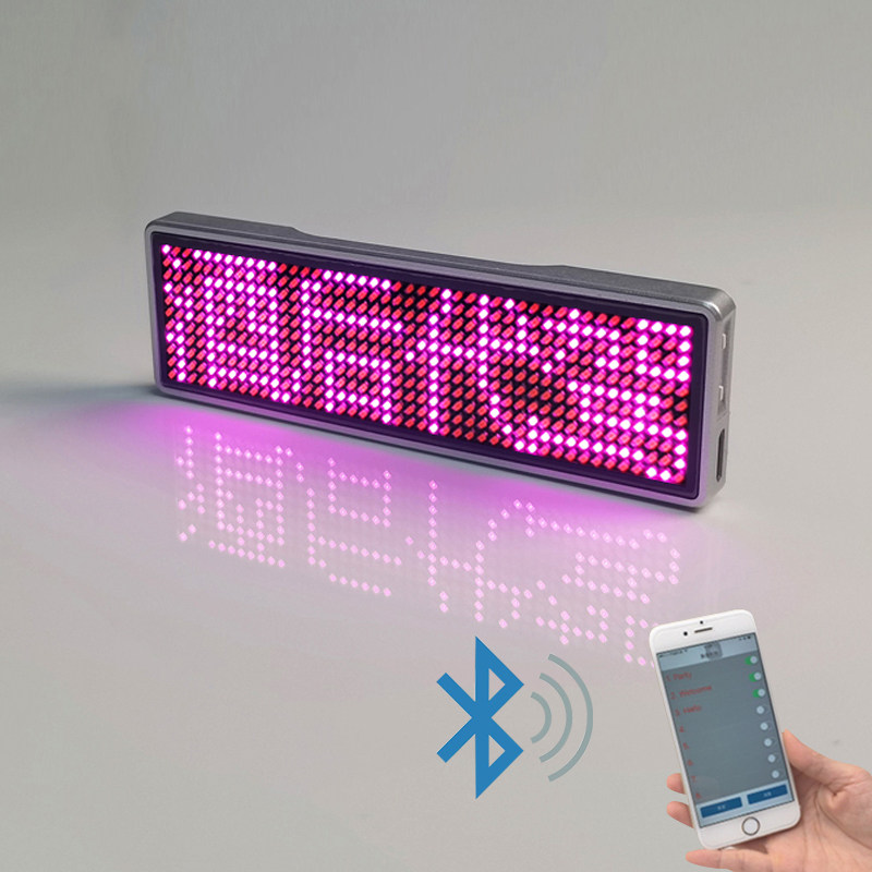 LED胸牌充电发光滚动走字屏酒后代驾胸卡酒吧KTV工号牌四字红色