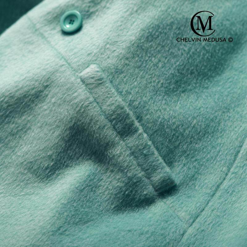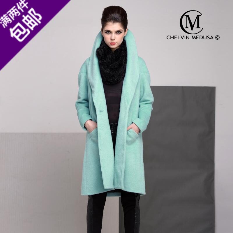 新款 2019秋冬欧美名媛马卡龙大领青果领中长厚长毛呢外套大衣