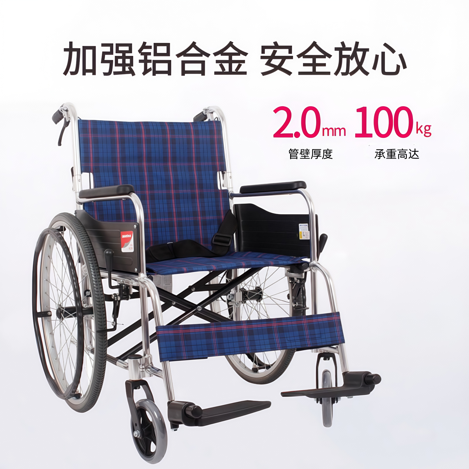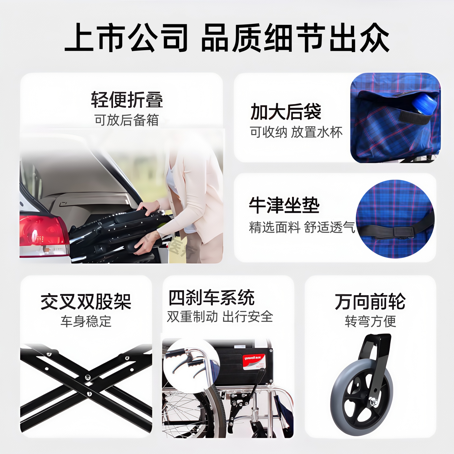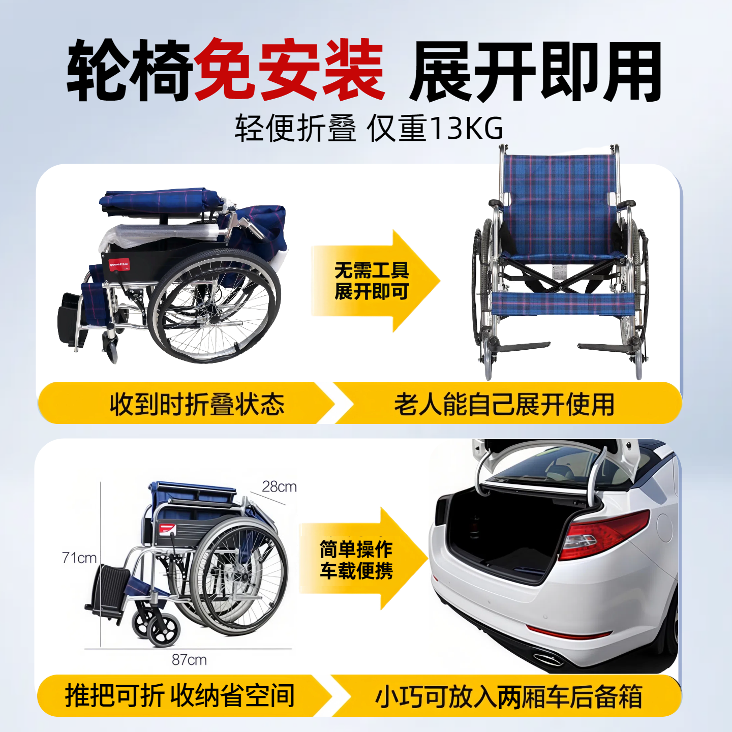 鱼跃轮椅车折叠轻便老人专用轻型瘫痪便携旅游代步骨折手动车小轮
