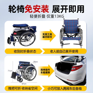 轮椅折叠轻便小型瘫痪老人专用带坐便医院同款 小型手动便携代步车