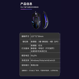 有线发光静音鼠标usb笔记本台式 电脑办公商务网吧电竞通用DPI键鼠