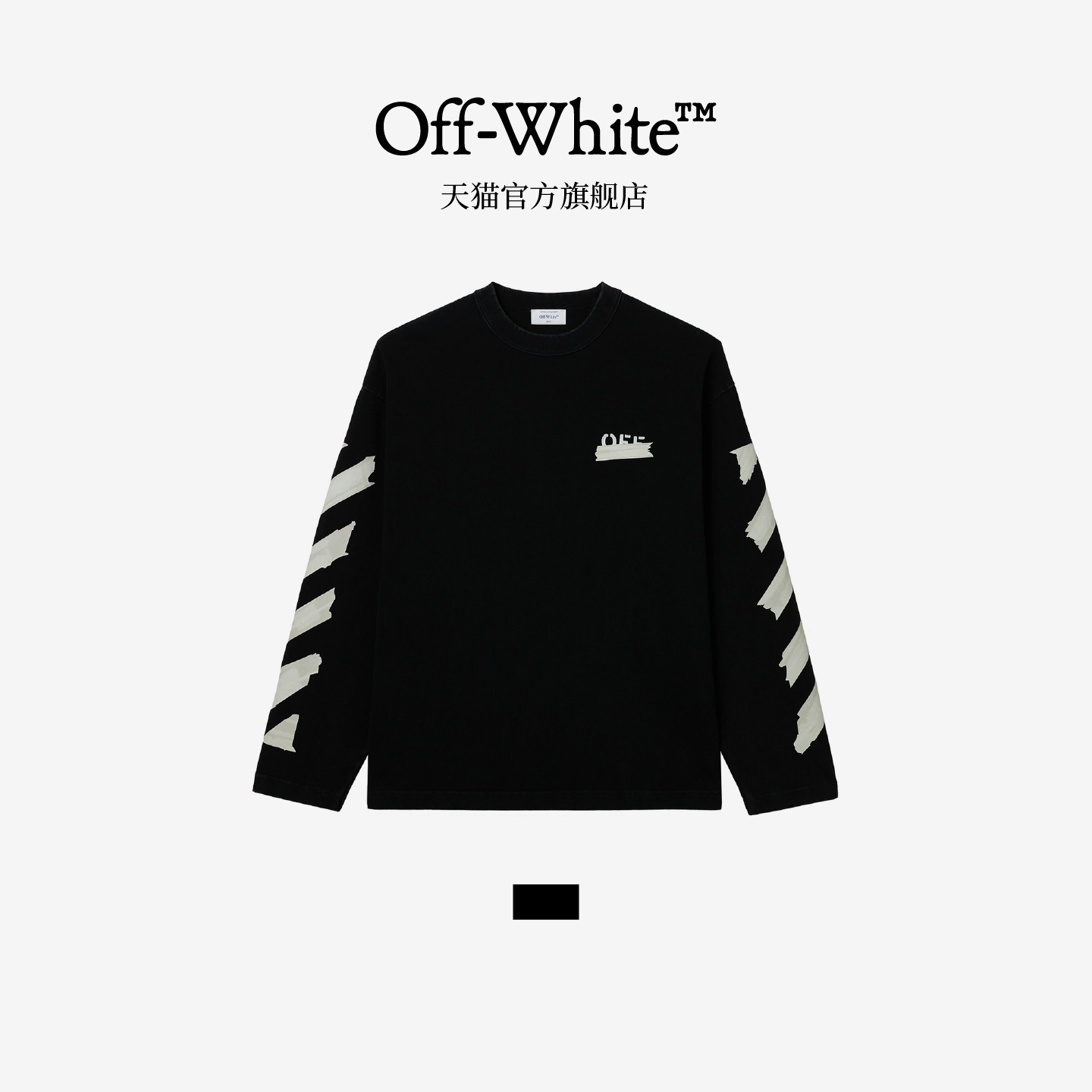 T恤潮流街头双箭头图案装 OFF 圆领长袖 新款 饰上衣 WHITE™情侣装