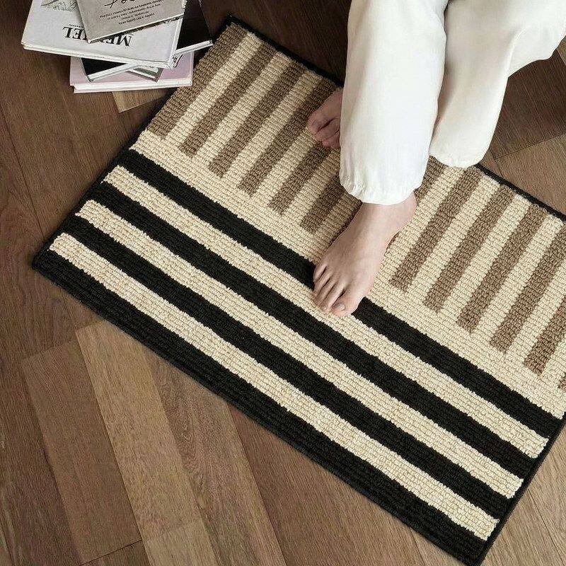 DDD 北欧风浴室吸水防滑地垫简约入户门玄关脚垫厕所条纹蓝色地毯