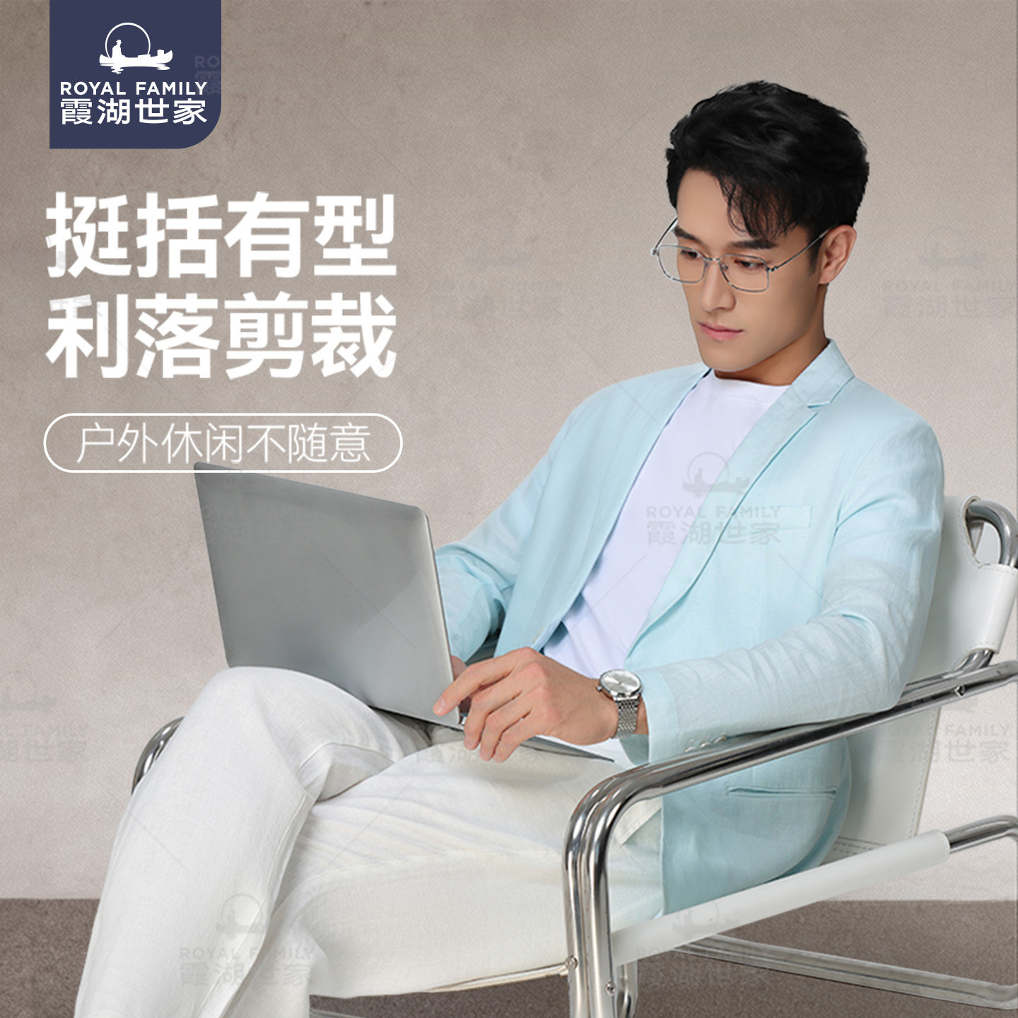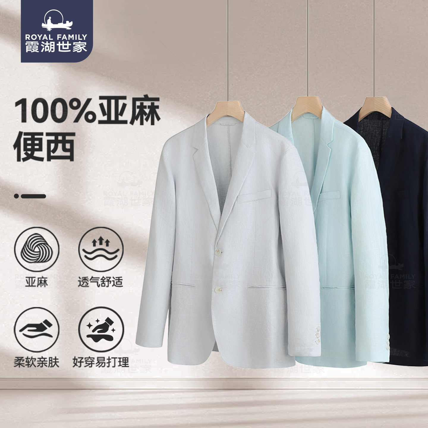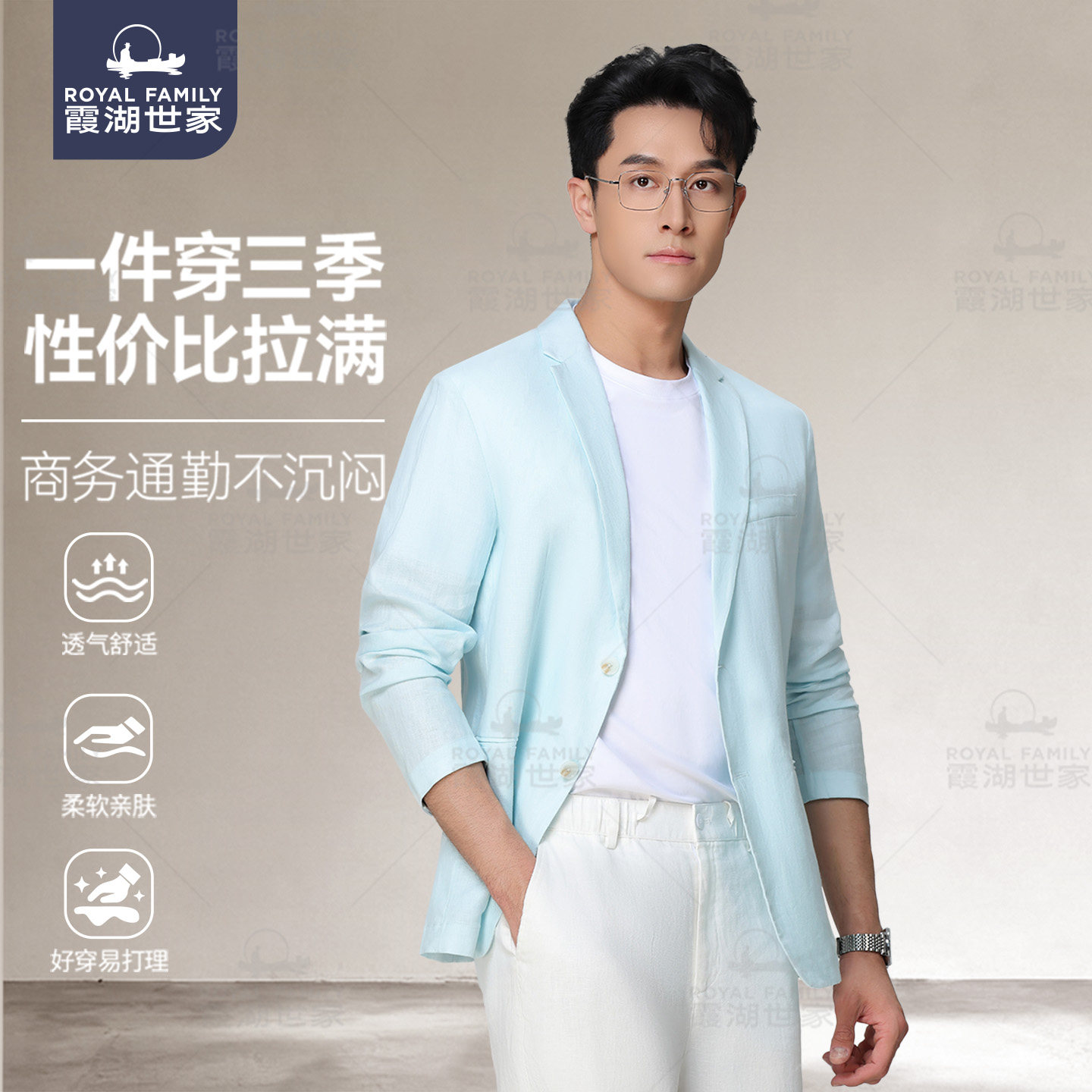 通勤老钱风外套420A 霞湖世家休闲西服男2026新款 纯亚麻小便西