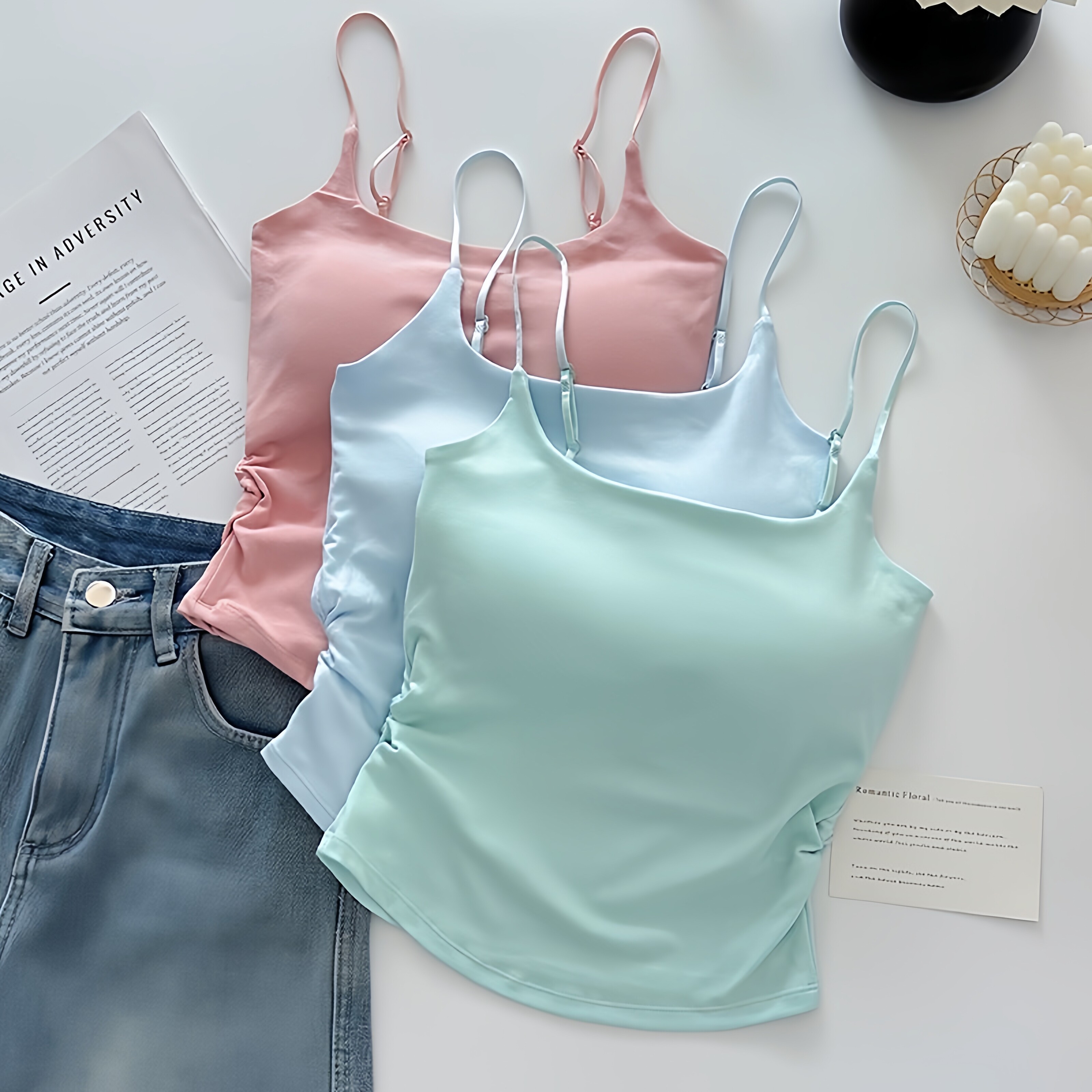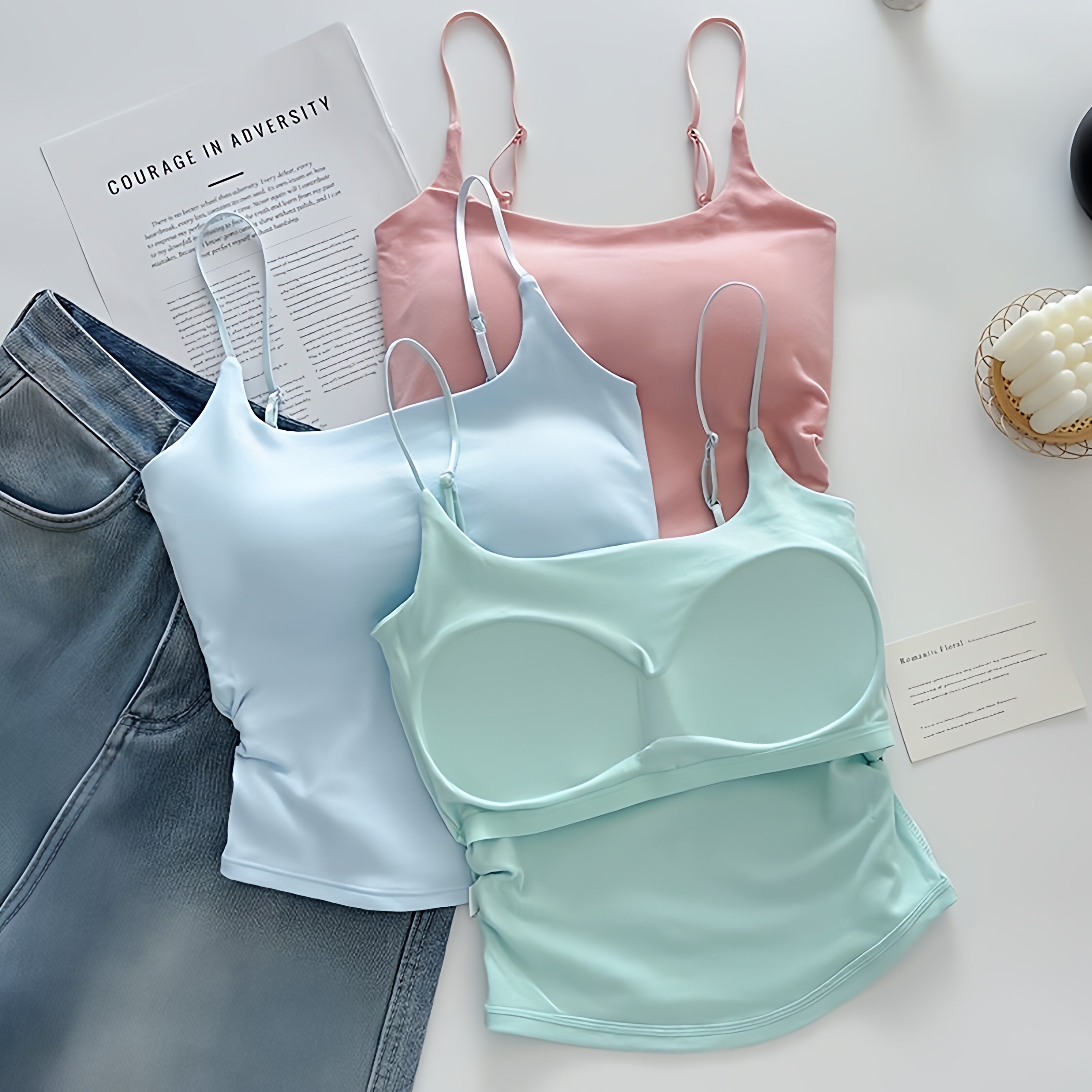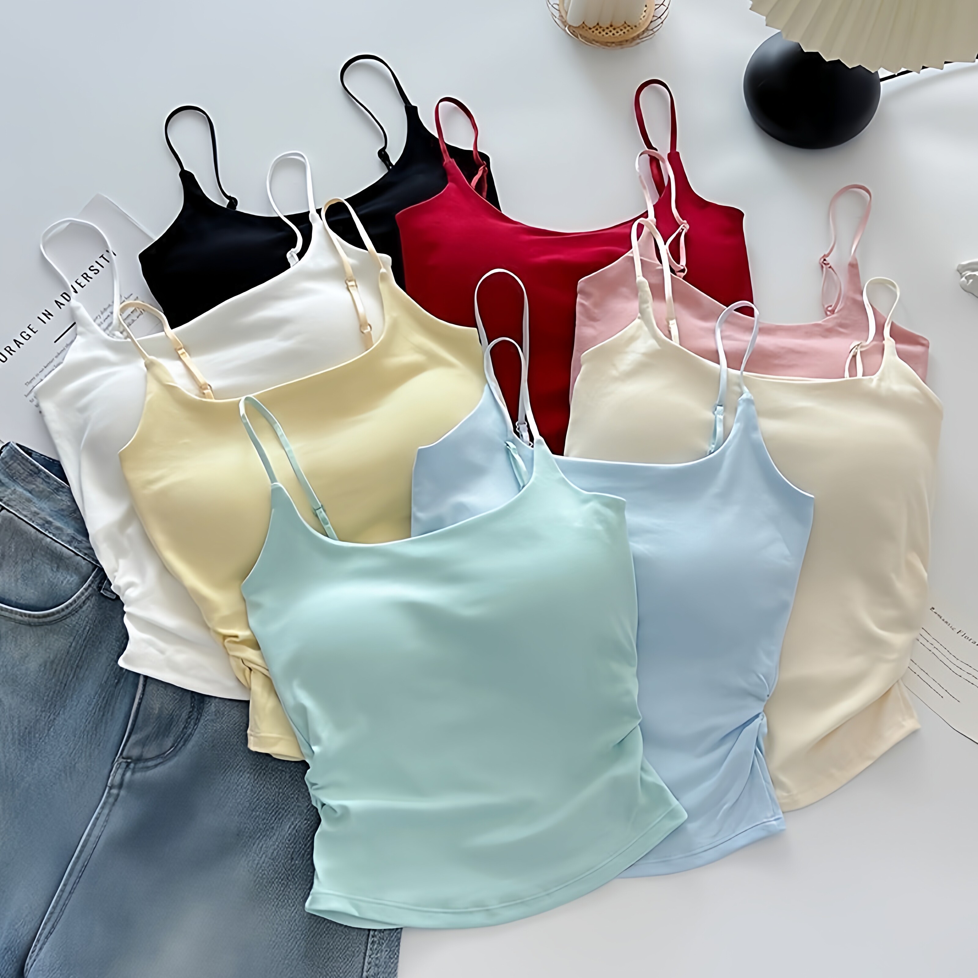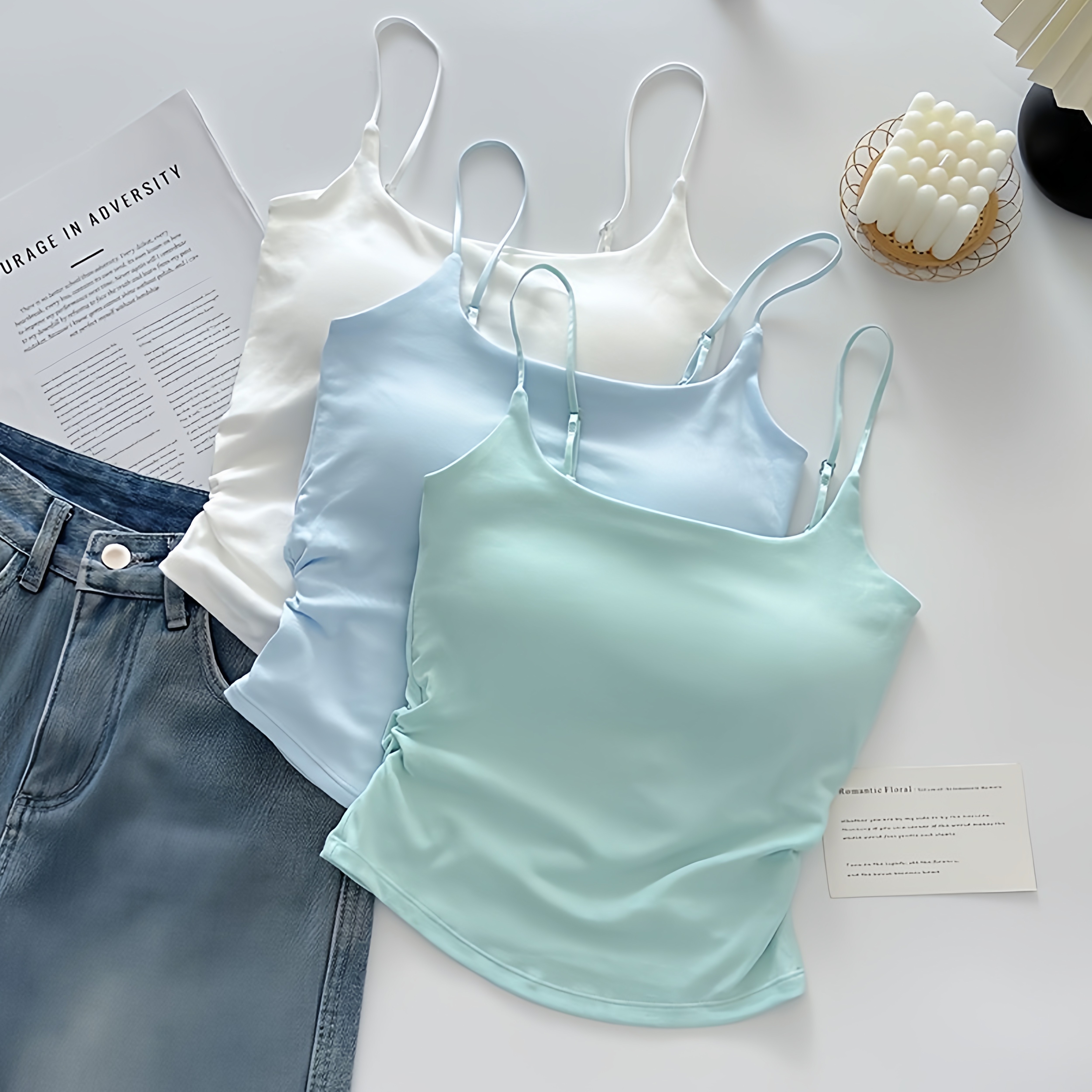 小清新纯欲风设计感褶皱带胸垫吊带背心女内搭外穿修身 美背上衣夏
