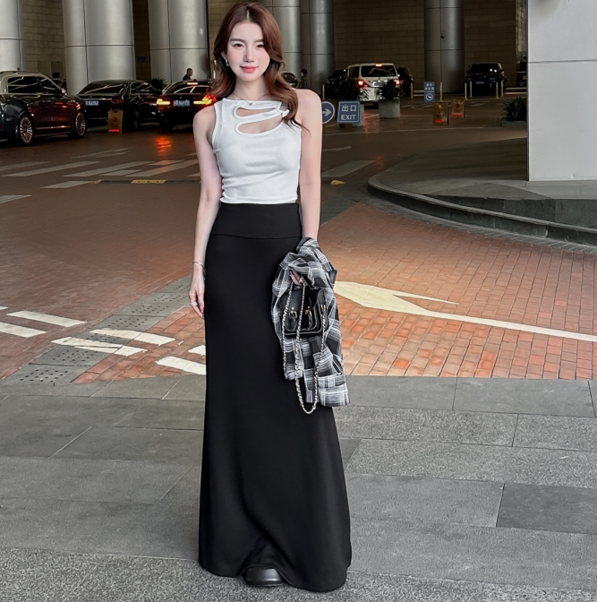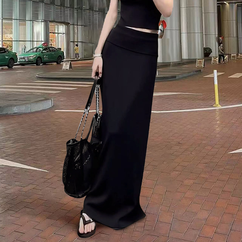 显瘦A字裙 设计感修身 拖地半身裙女黑色长款 气质长裙2026春夏新款