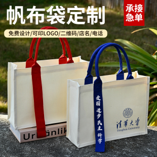 帆布袋托特包定制logo立体飘带展会企业学校宣传手提大容量环保袋