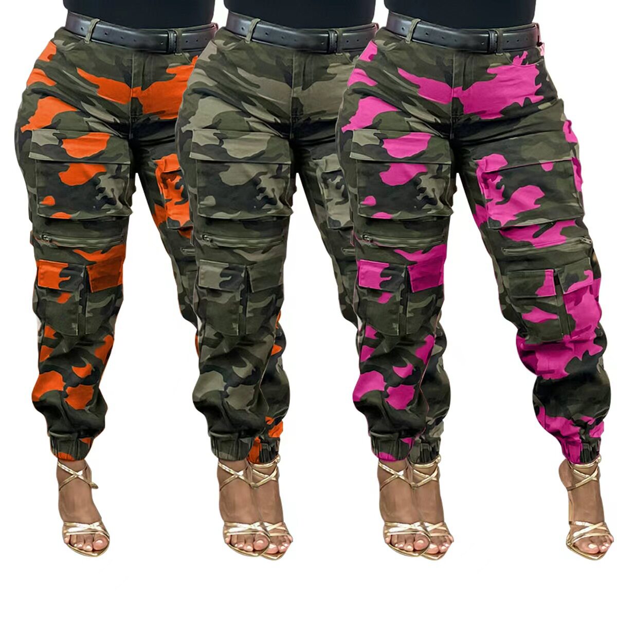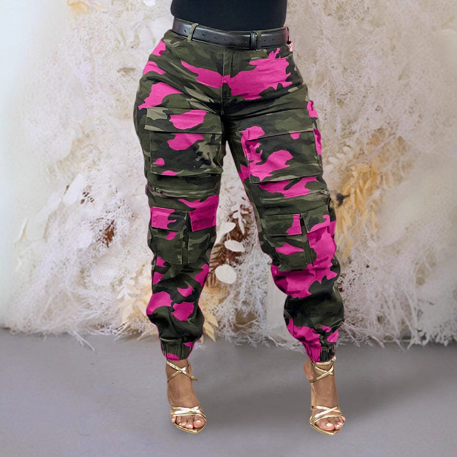 camouflage stretch work pants高腰弹力小脚迷彩工装 Women 裤
