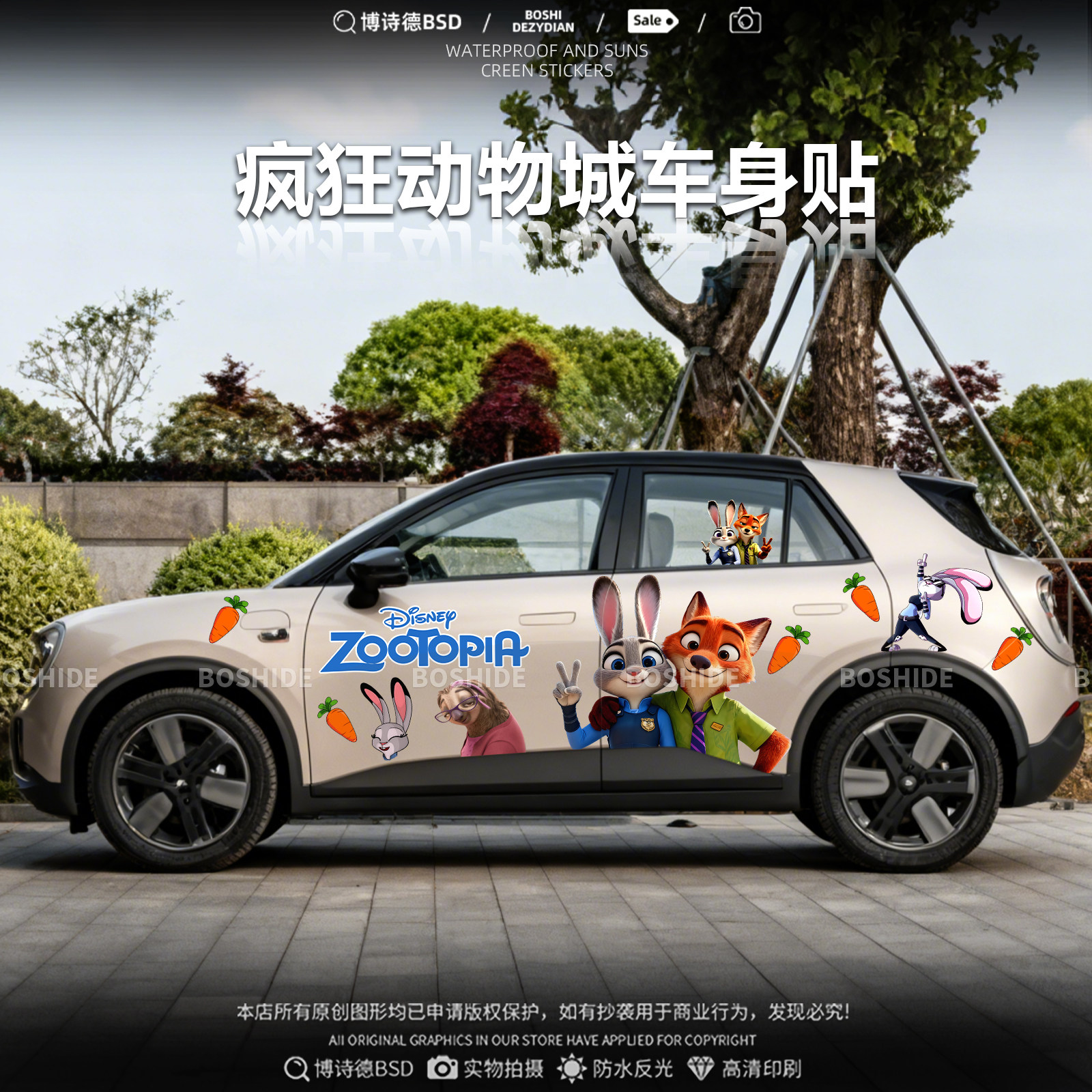 蔚来萤火虫疯狂动物城车贴拉花朱迪尼克海鸥缤果星愿车身定制贴纸
