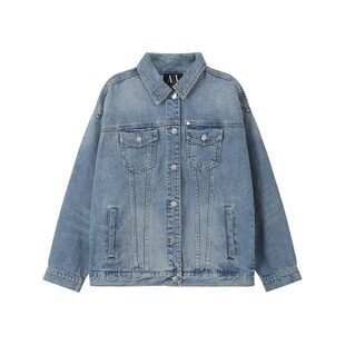 Armani阿玛尼AX 300095 女士复古做旧牛仔服夹克外套银泰百货