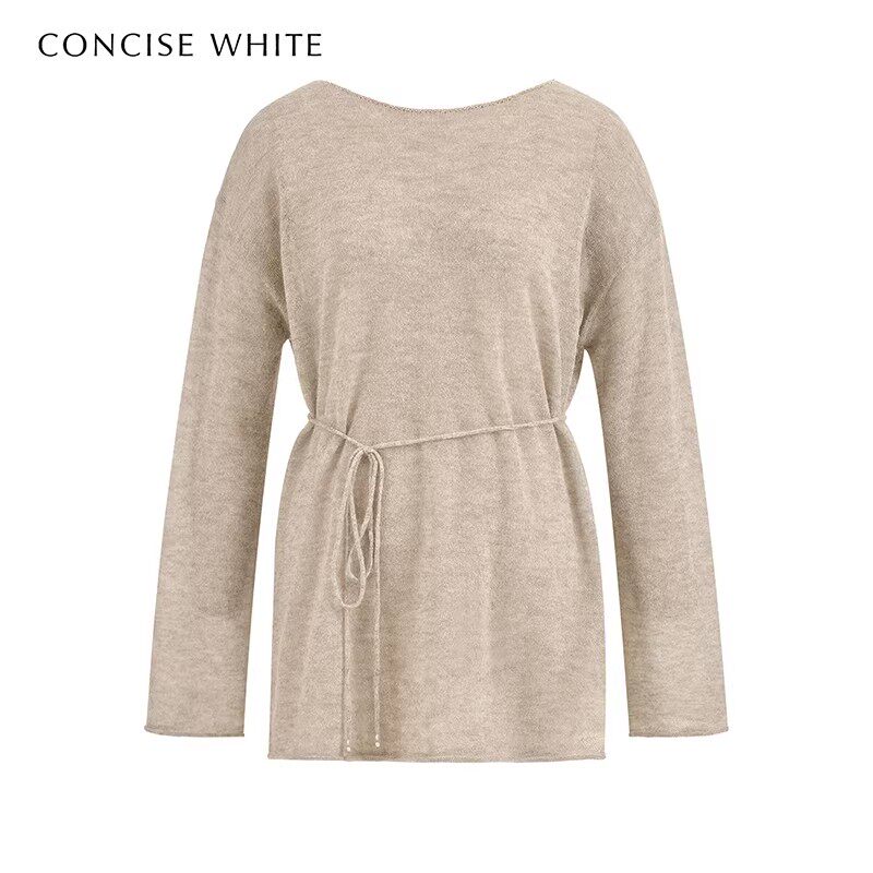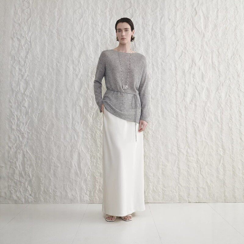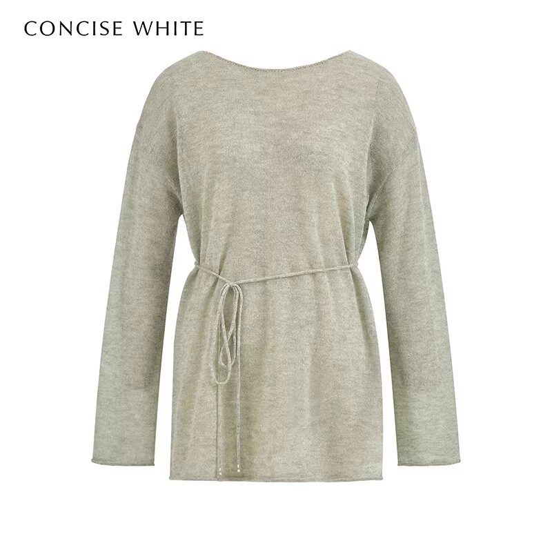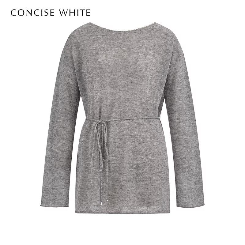 银泰 concise 女钩边系带羊毛衫 简白26春夏新款 301257 white