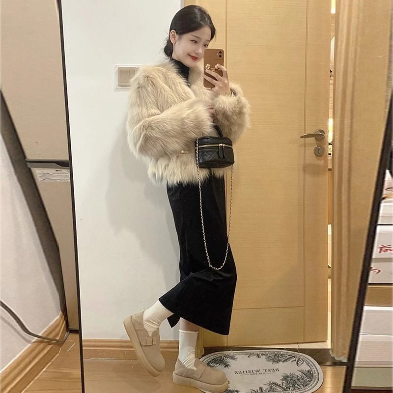 小香风皮草外套女2026新款 环保毛毛皮毛一体 冬加厚加绒小个子短款