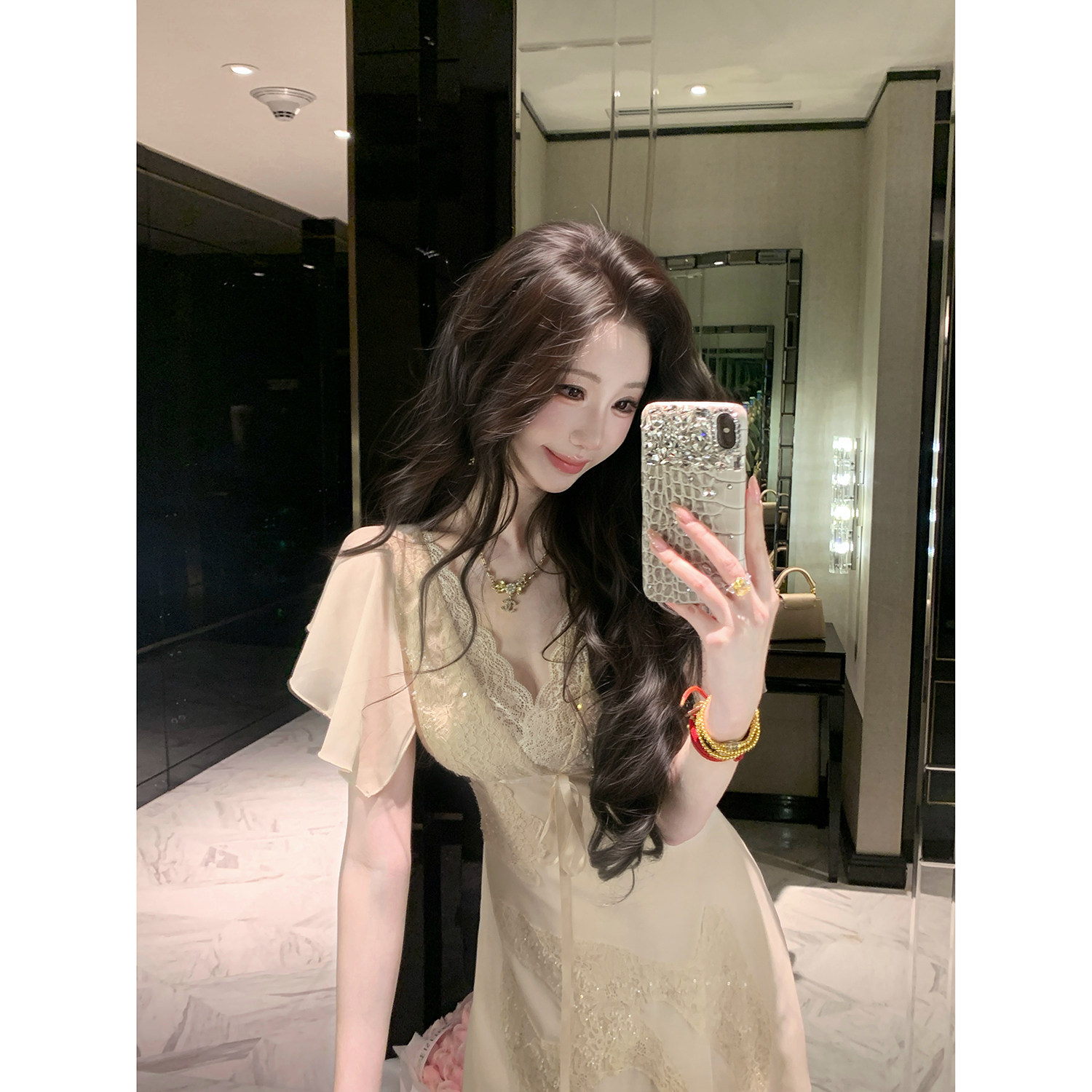 掌上娇妻 小飞袖 夏季 纯欲蕾丝雪纺收腰短款 连衣裙 新款 Sun雅乔