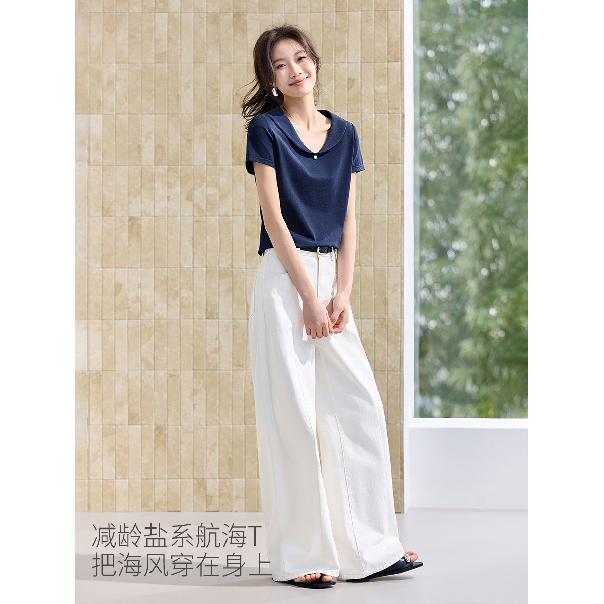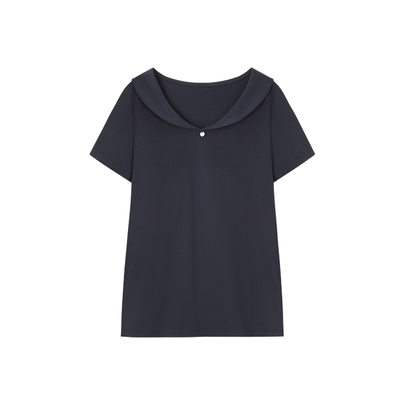 型装 V型娃娃领正肩合体版 饰圆标T恤 百搭26夏新款 沫晗依美气质时尚