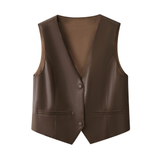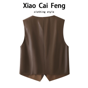 欧货老钱风pu皮衣马甲背心女秋装 上衣潮 v领叠穿坎肩马夹外套短款