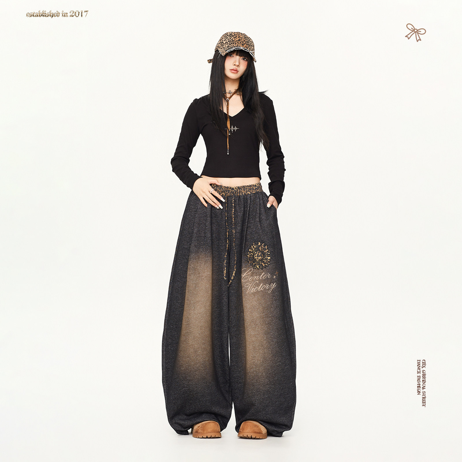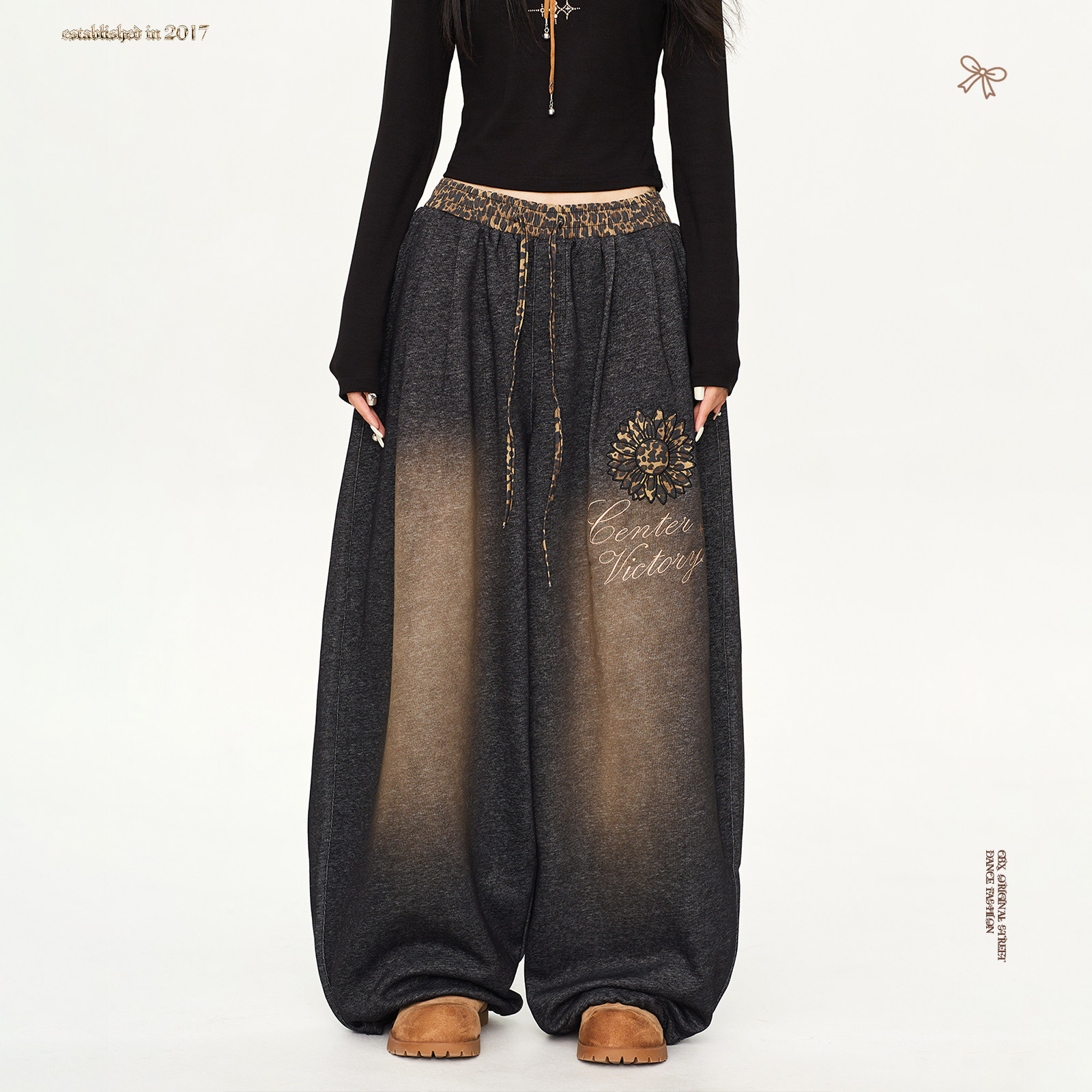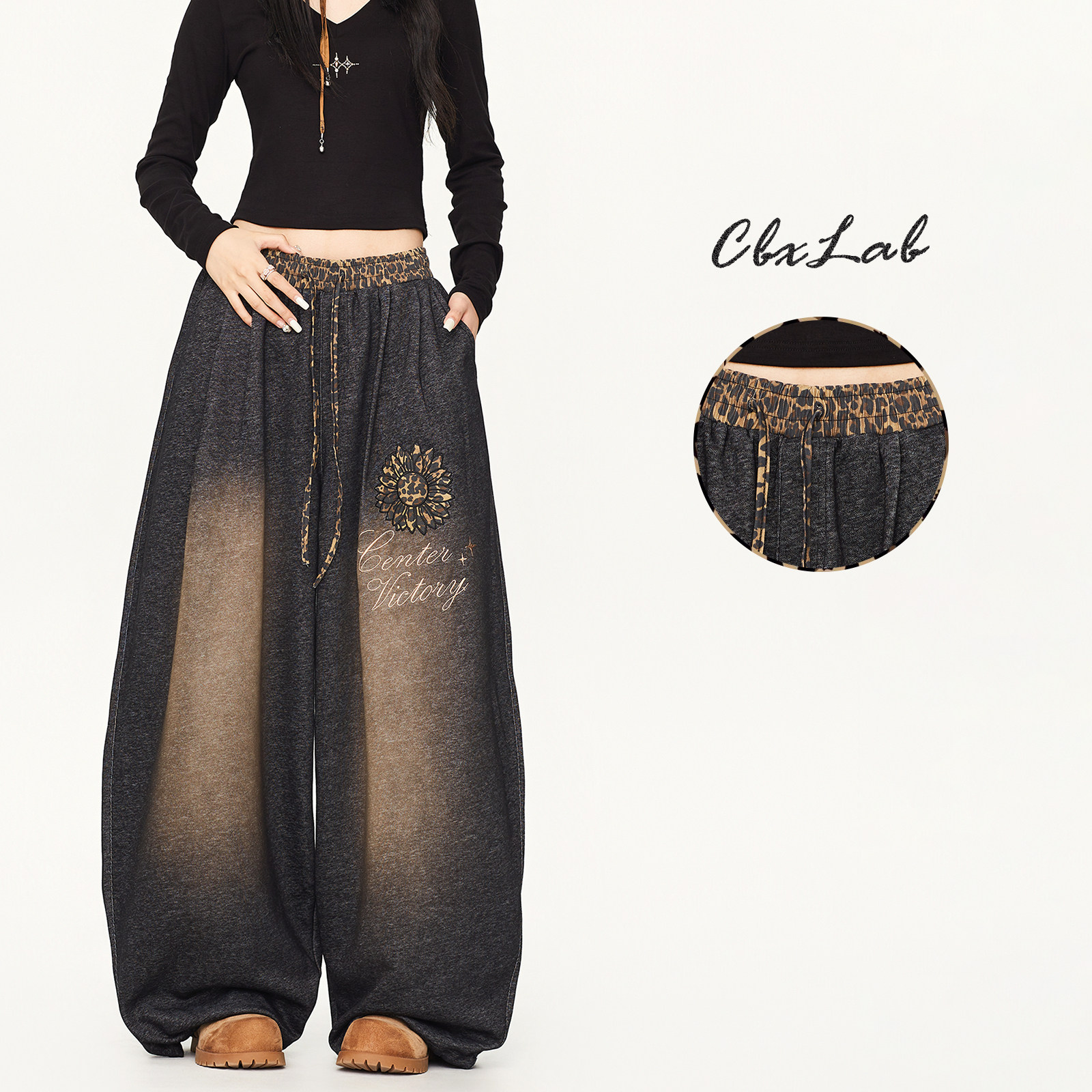 复古爵士运动裤 CBXLAB街舞潮牌性感辣妹豹纹做旧嘻哈长裤 街头美式