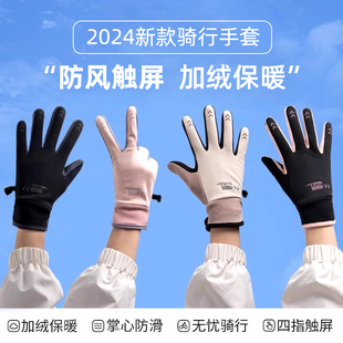 加绒手套保暖女秋冬季 防风加绒厚触屏防寒户外电动车骑行保暖手套