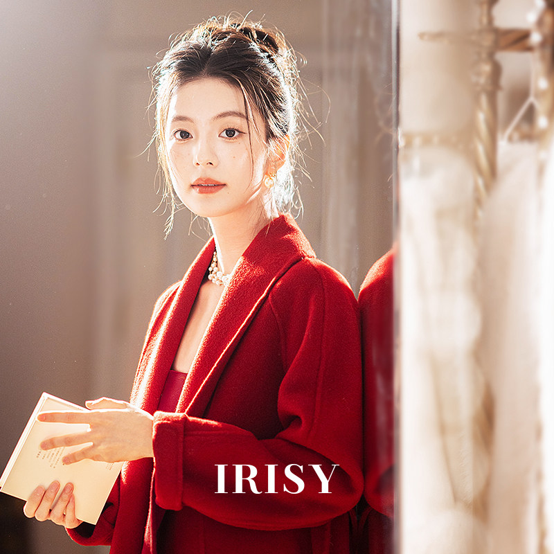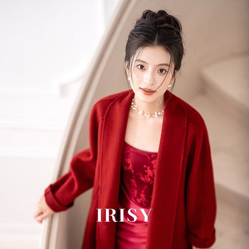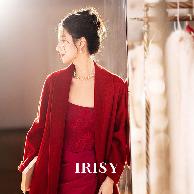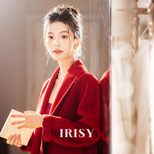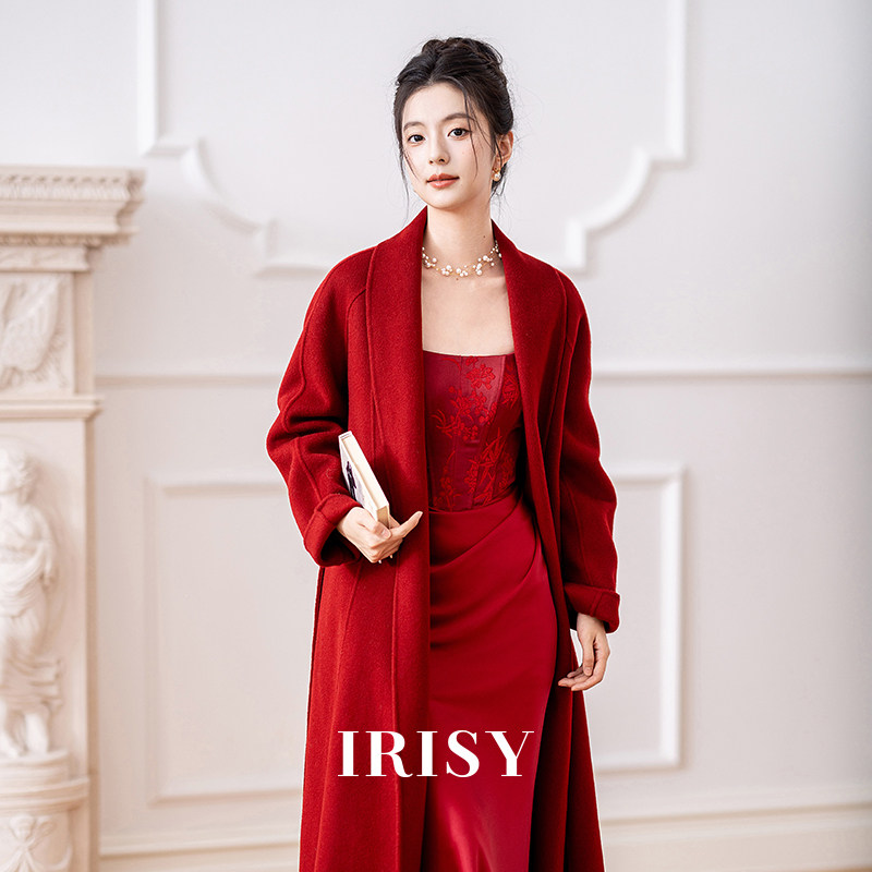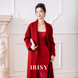 IRISY 外套 「颂歌」红色高级感羊毛女大衣新娘结婚出门服秋冬长款