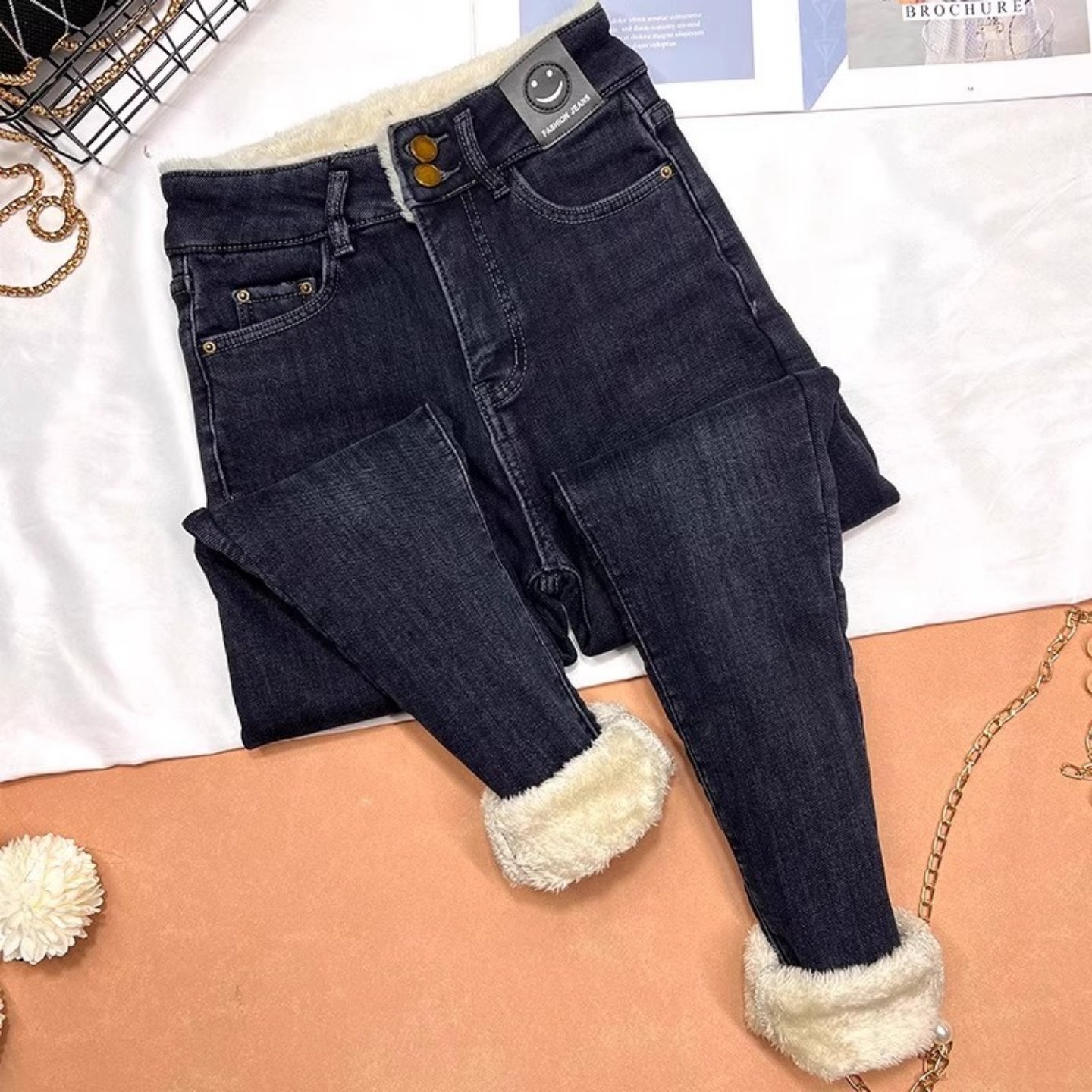 羊羔绒高腰显瘦紧身小脚长裤 加厚2025年新款 女冬季 特厚加绒牛仔裤