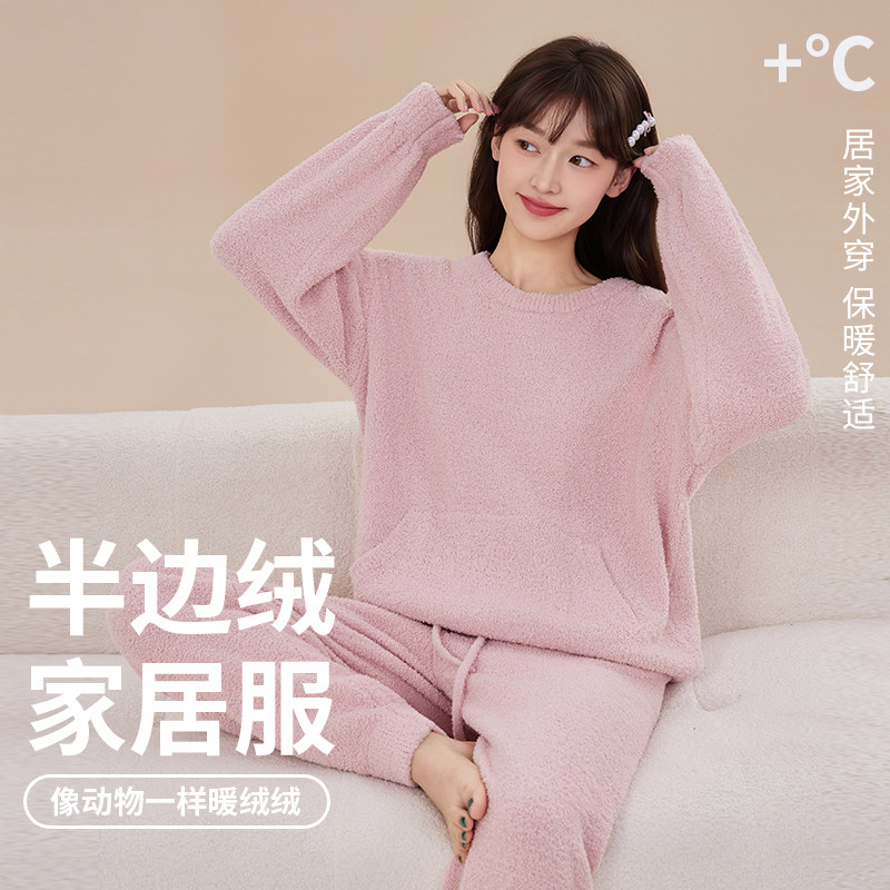 馨帮帮Homedress 毛绒软糯亲肤保暖家居服女冬 珊瑚绒小猪睡衣套装