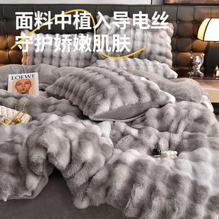 高端兔绒四件套牛奶绒床上加厚双面珊瑚绒秋冬季 床单被套2025新款