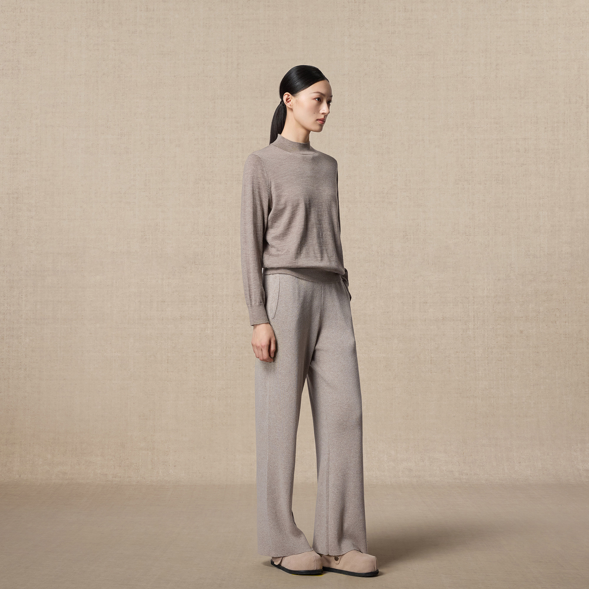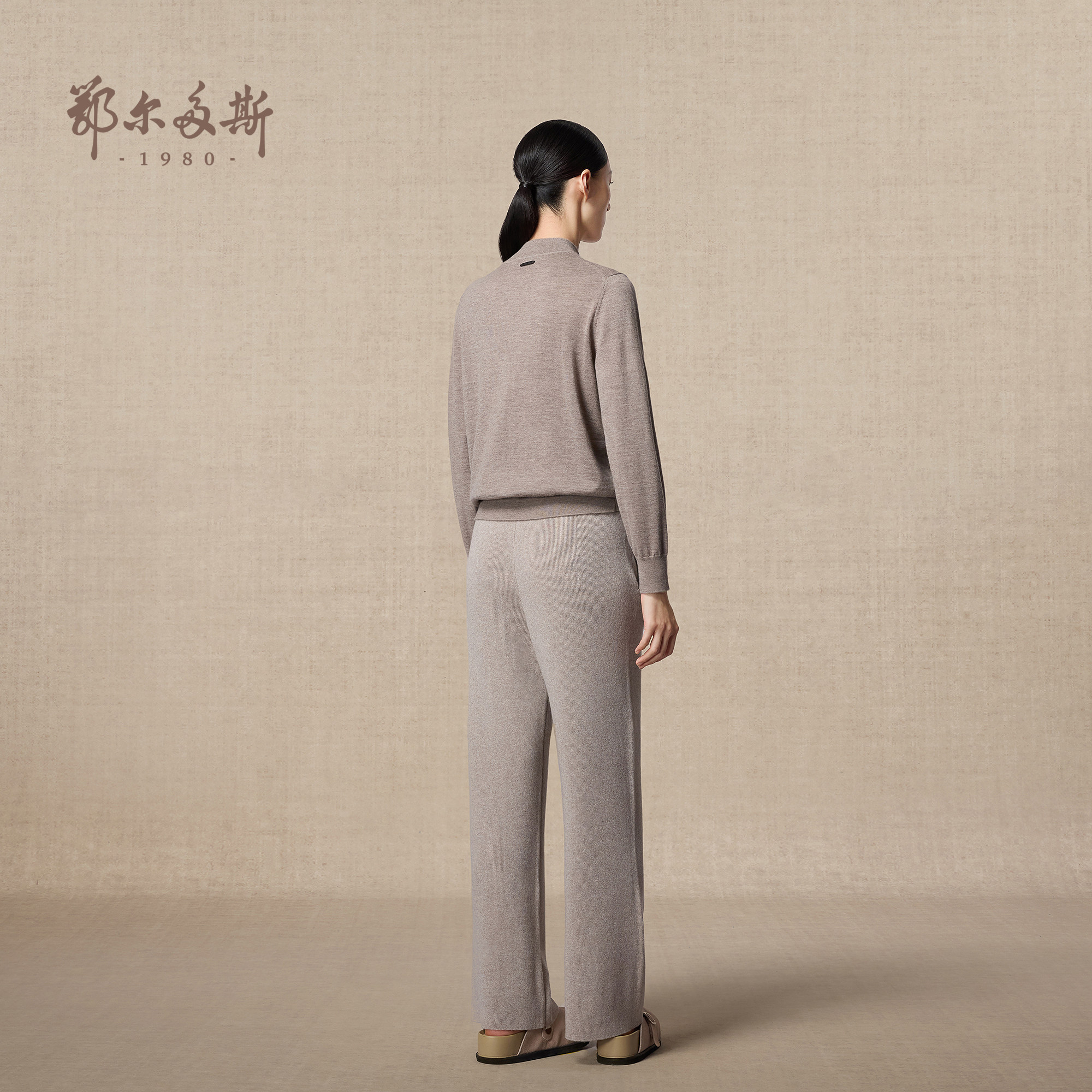 女装 纯色老钱风休闲裤 厚款 25年秋冬新品 抽条羊绒裤 鄂尔多斯1980