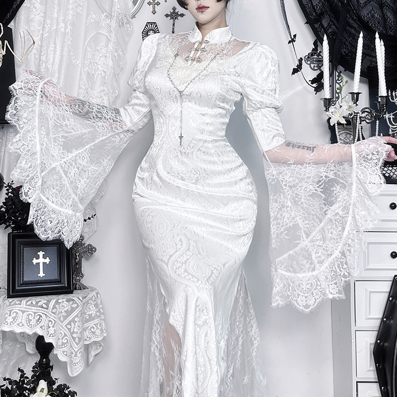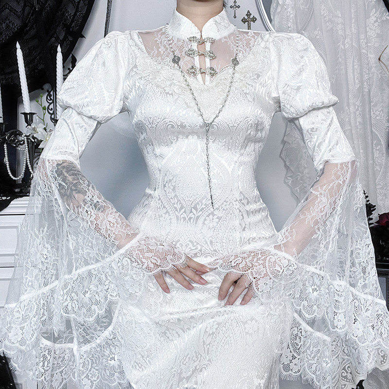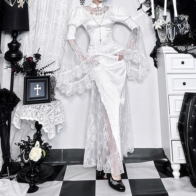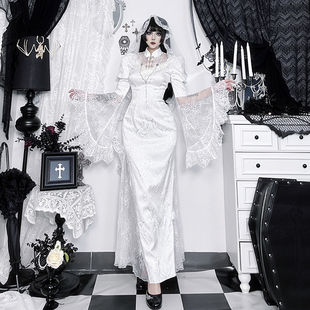 希与STUDIO万圣节哥特风蕾丝刺绣婚纱裙亚文化蕾丝拼接长袖 连衣裙