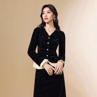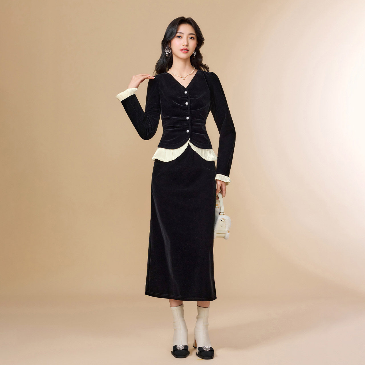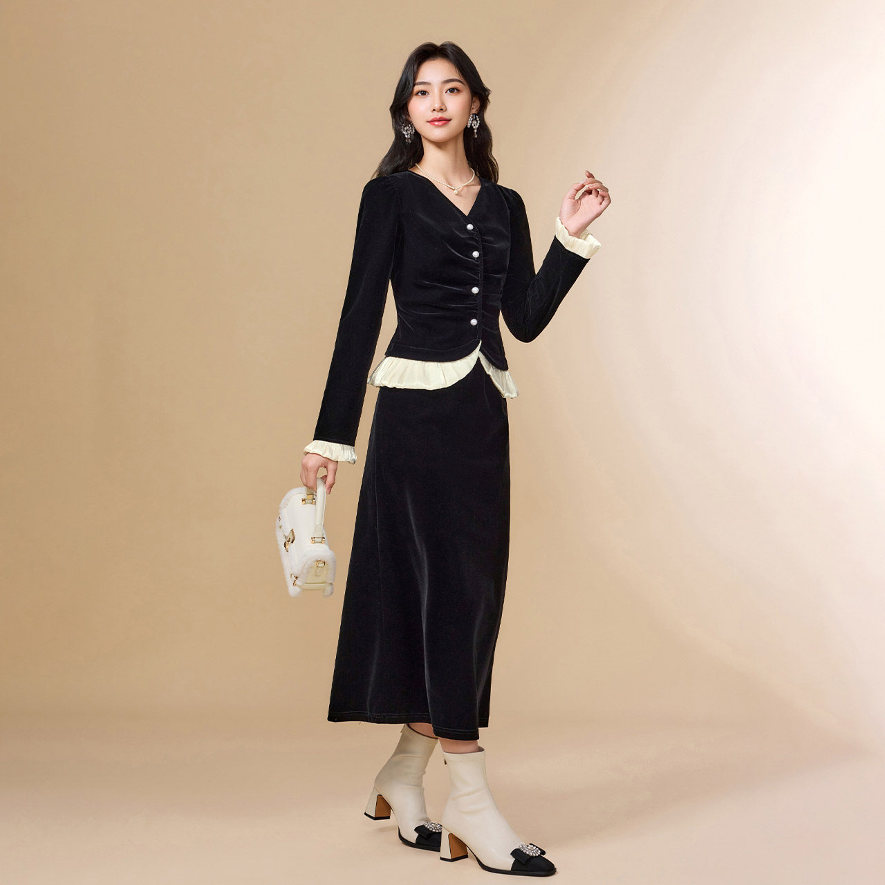 法式 华丽新贵 名媛气质天鹅绒上下套裙 爱依服2025秋冬新款 IEF