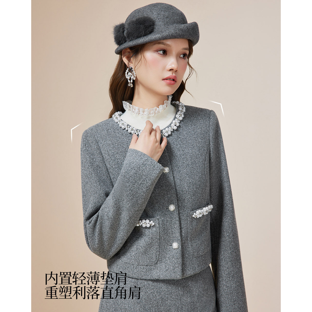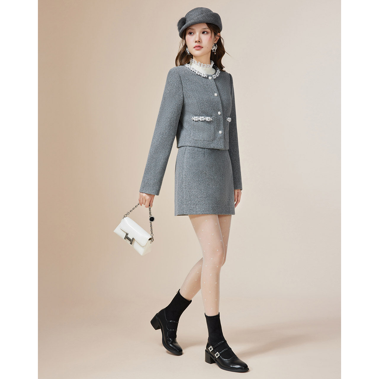 法式 新款 轻奢名媛小香风气质百搭呢绒上下套裙 爱依服2025冬季 IEF