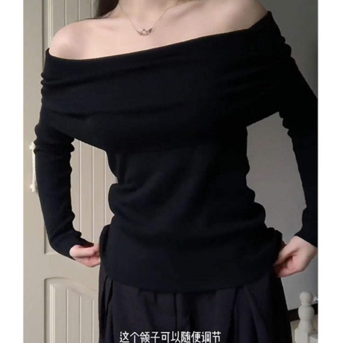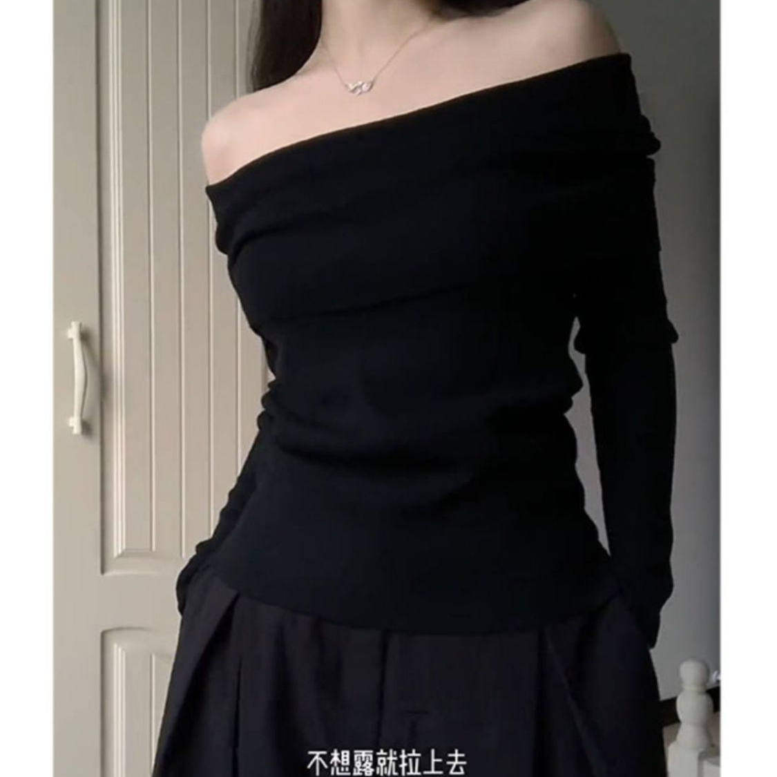 胖MM设计感一字肩修身 女春秋大码 显瘦上衣毛衣 针织衫 纯欲露肩长袖
