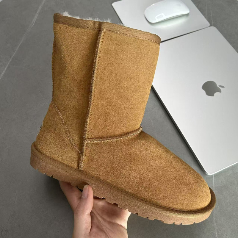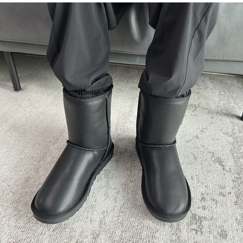 真皮防水加厚羊毛棉鞋 新款 羊皮毛一体中筒雪地靴东北大码 男士 冬季