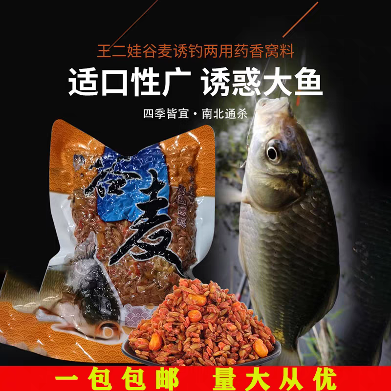品牌王二娃谷麦合川老师专用鲫鲤鱼小麦不空军正品 野钓鱼窝料巨物
