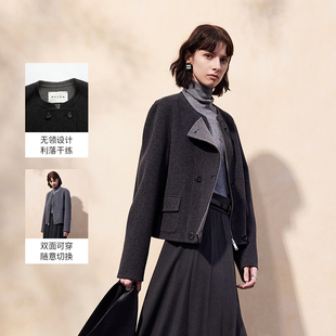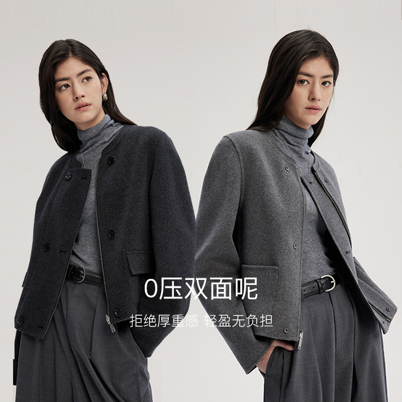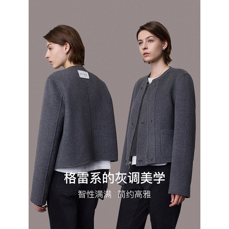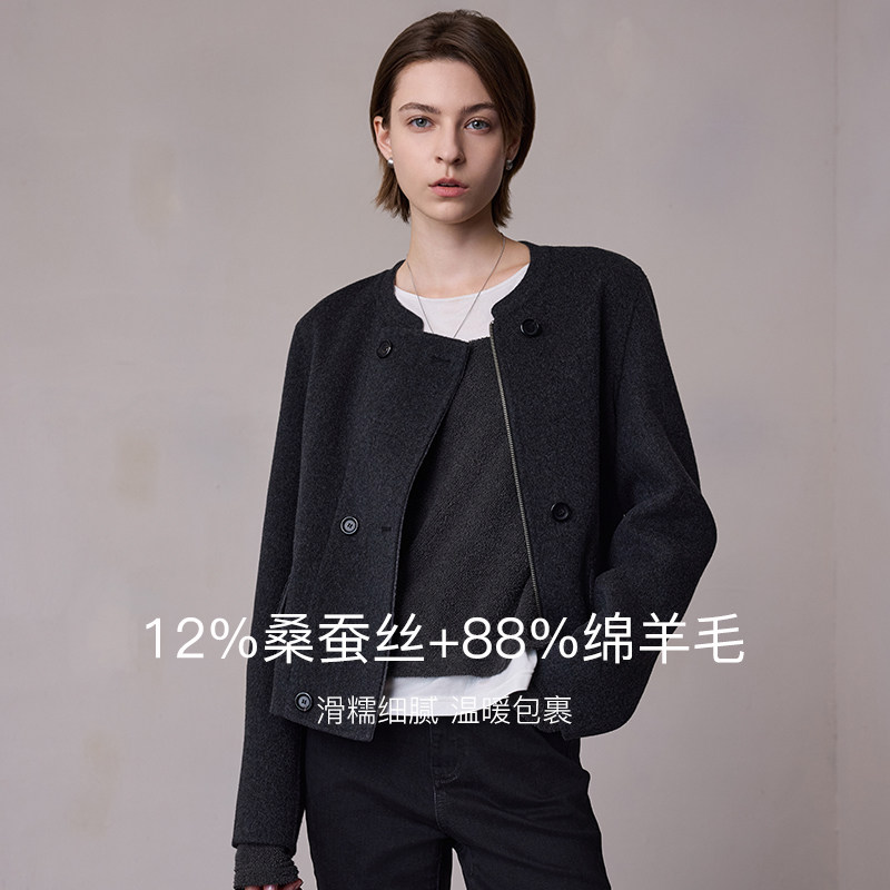MSLAN零压毛呢 含桑蚕丝小香风羊毛外套正反两穿双面呢小个子外套
