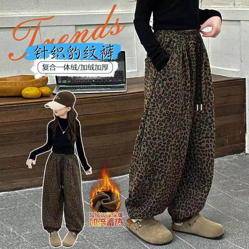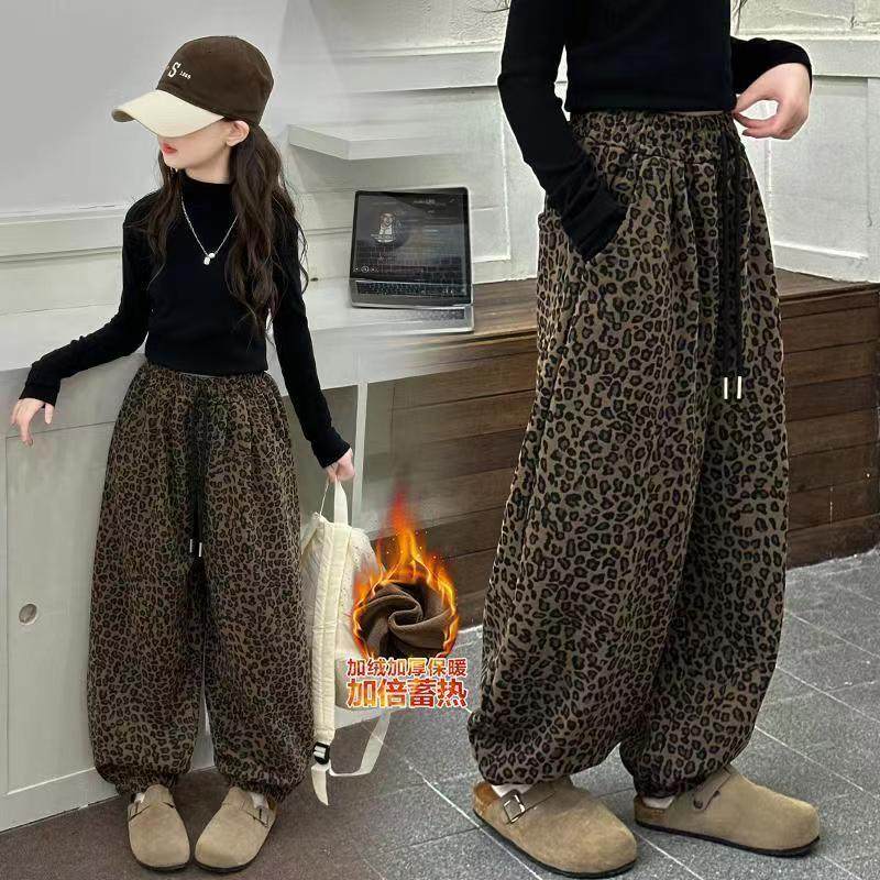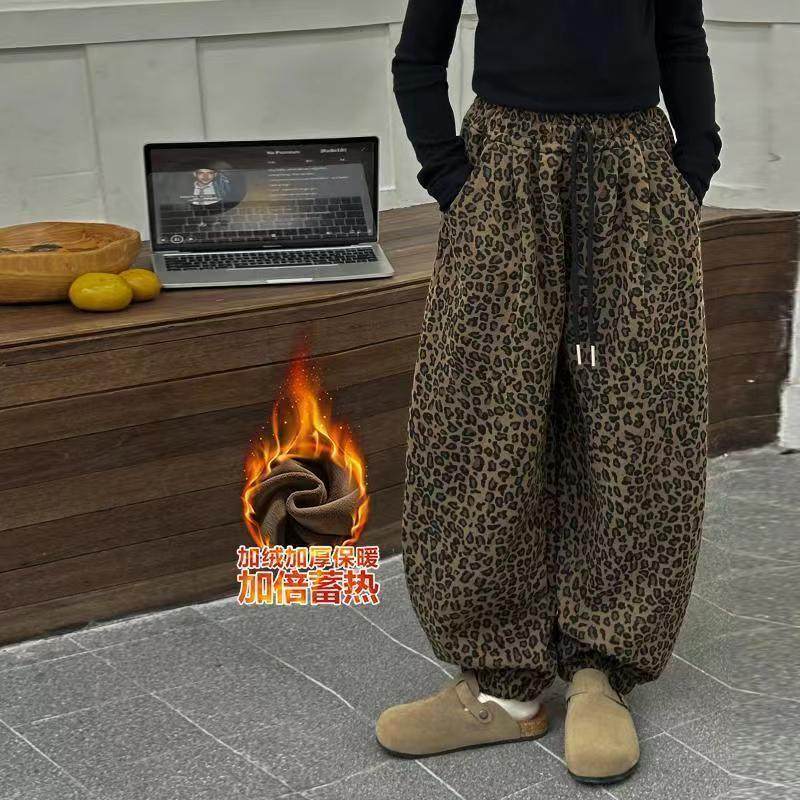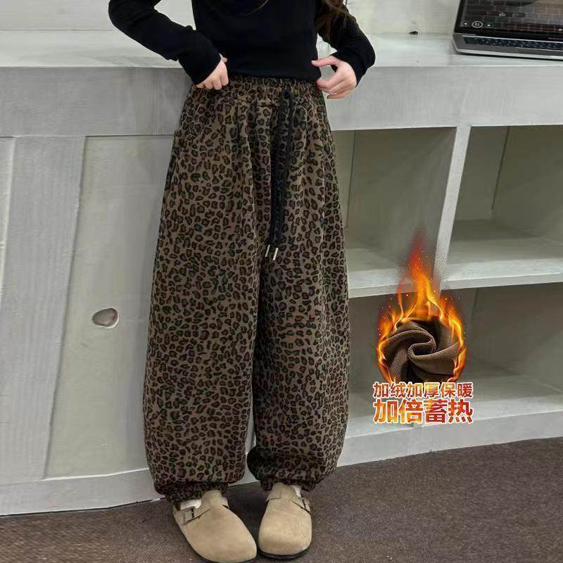炸街豹纹宽松灯笼裤 女童加绒裤 中大童休闲束脚哈伦裤 新款 子秋冬装