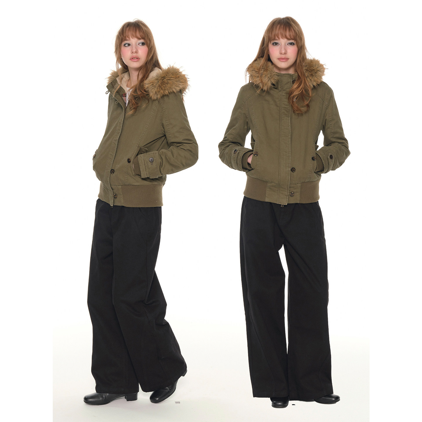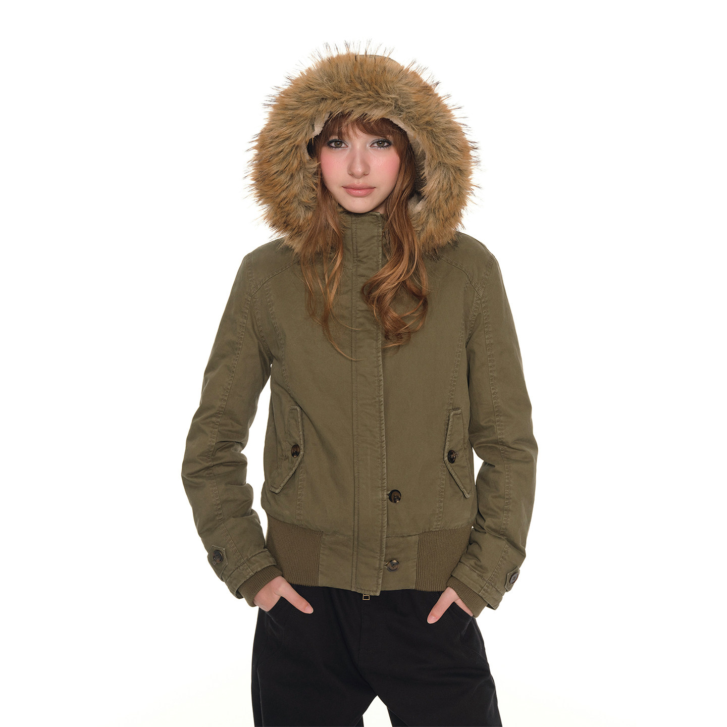新款 复古毛领棉服外套女冬季 短款 修身 上衣 UNRETRO 棉衣工装 美式