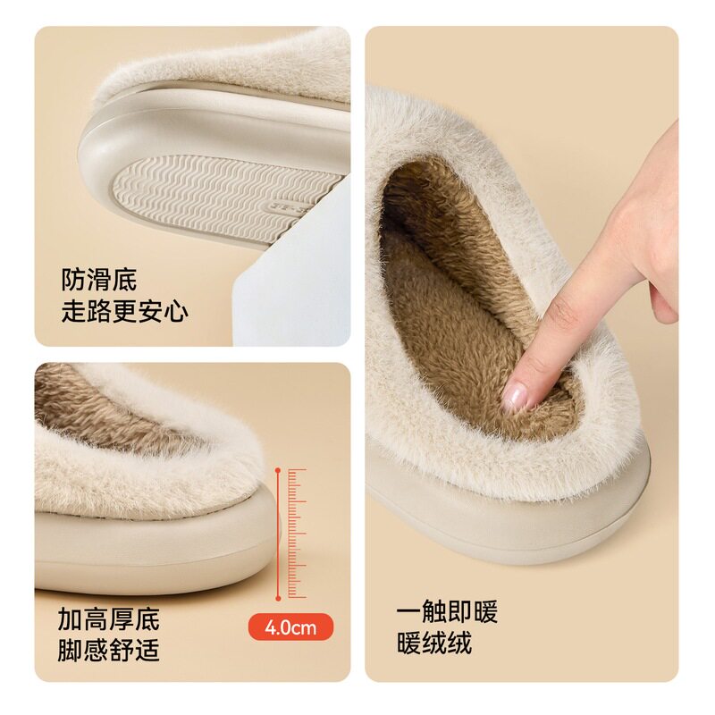 情侣居家室内防滑保暖毛拖鞋 2026新款 男 女秋冬季 利达妮抗菌棉拖鞋