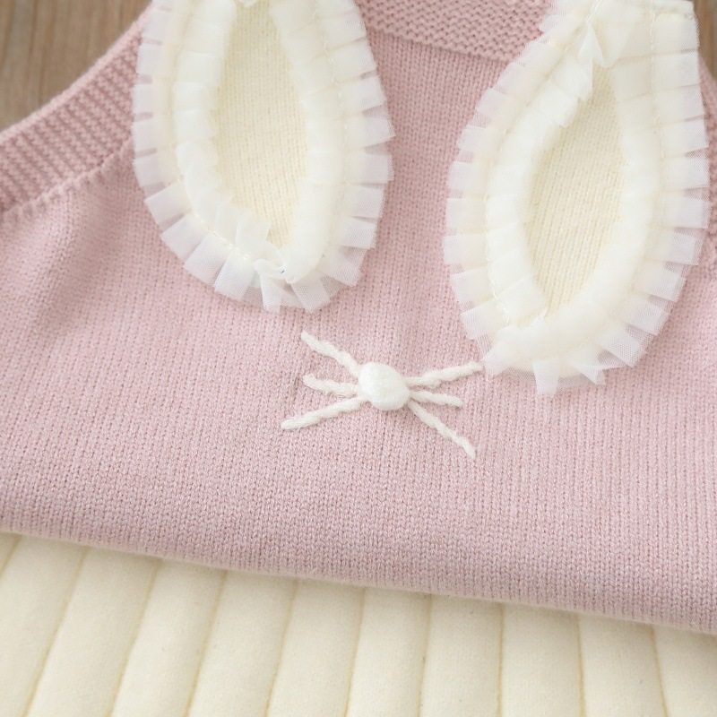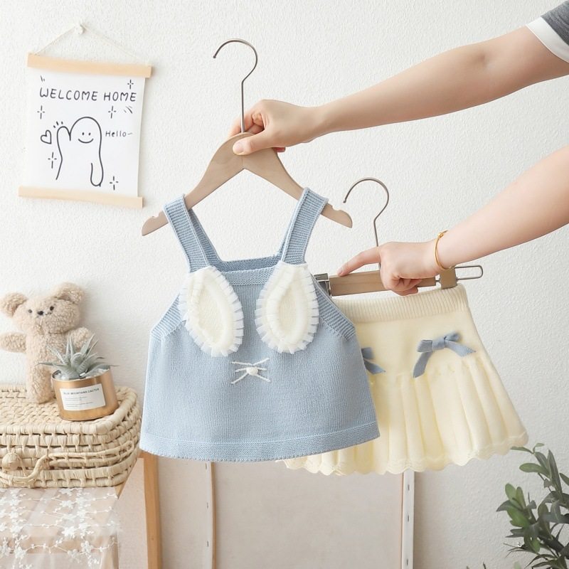 女童毛衣吊带兔子背心两件套装 小童甜美短裙宝宝婴儿针织套裙 秋季