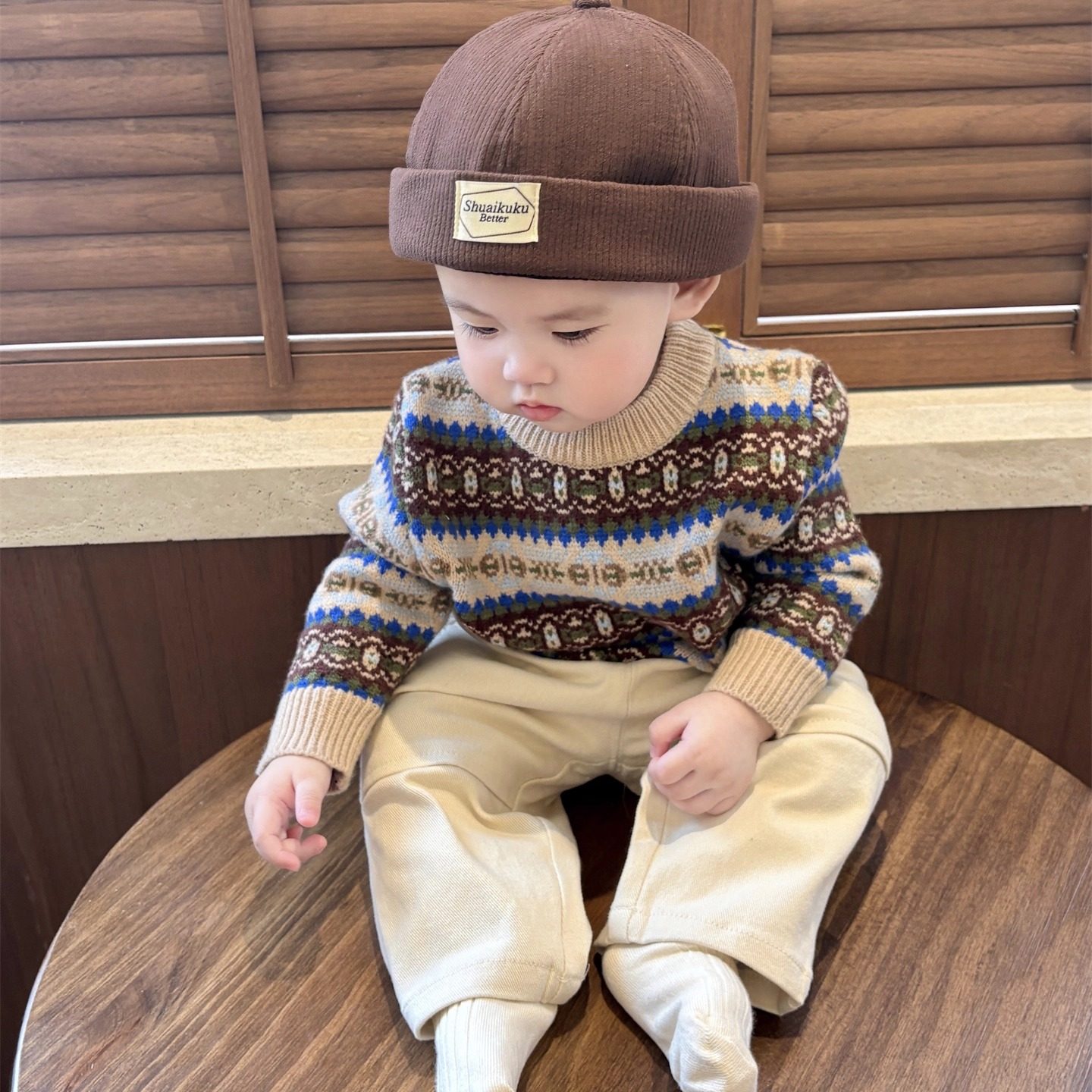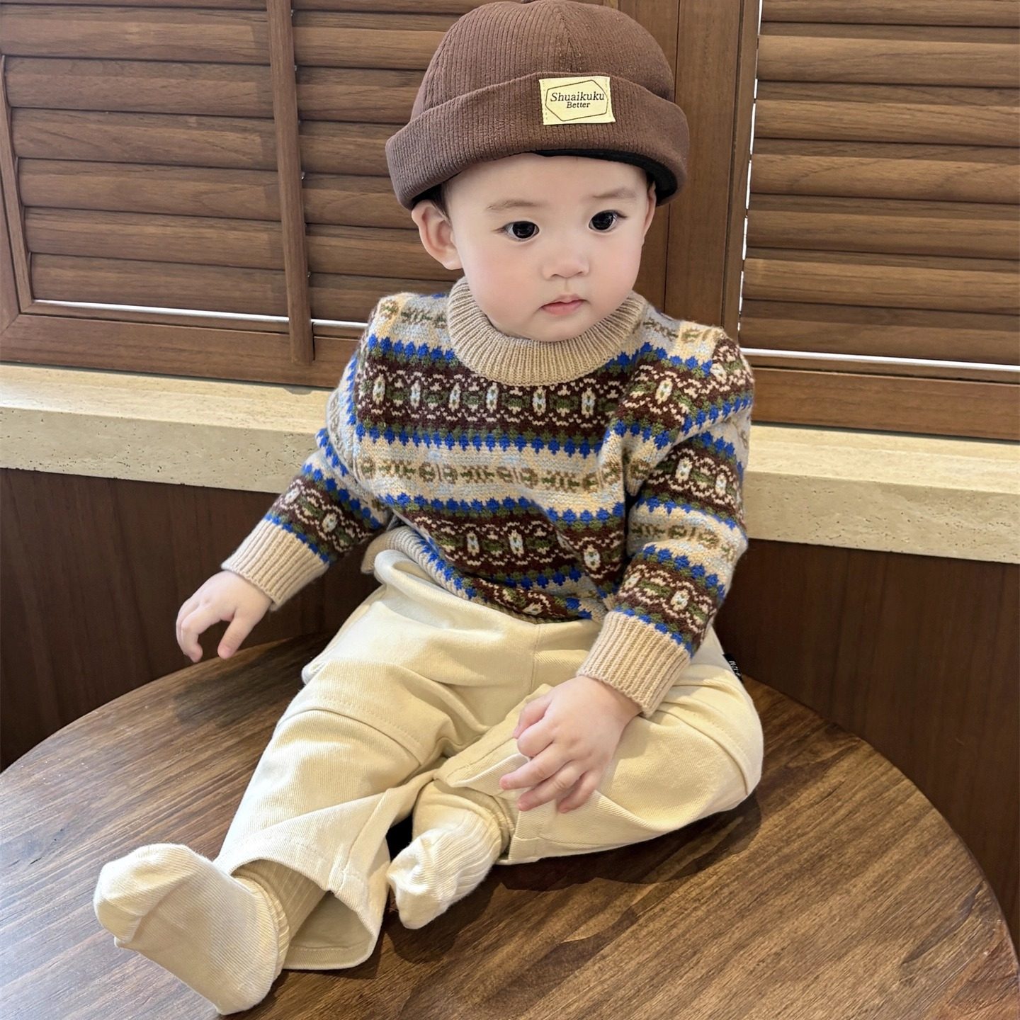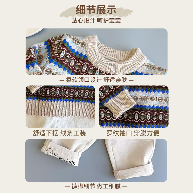 两件套周岁服 男宝痞帅风洋气时髦套头毛衣休闲裤 婴儿秋季 分体套装