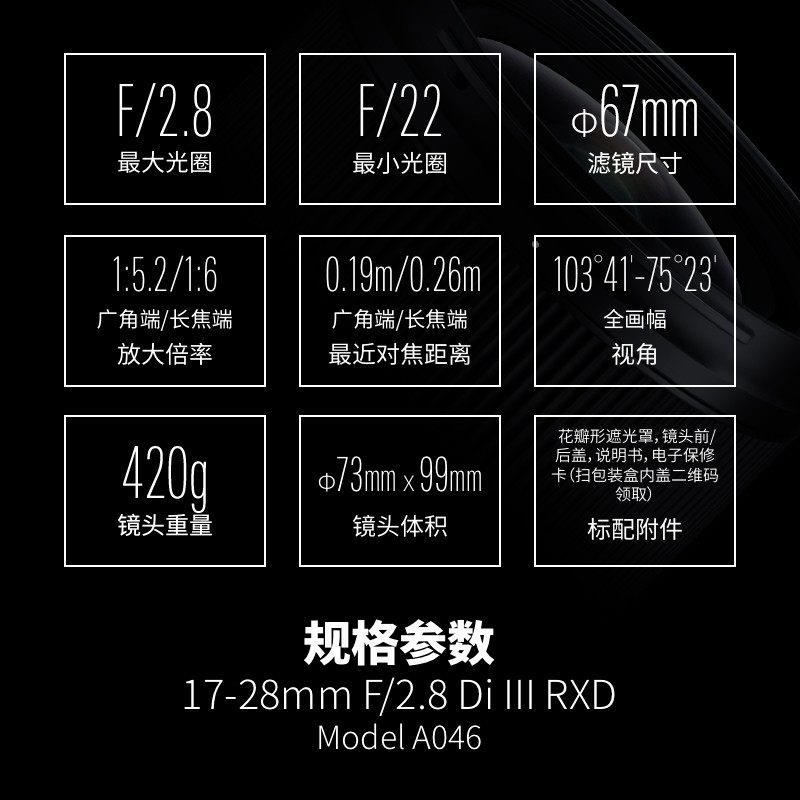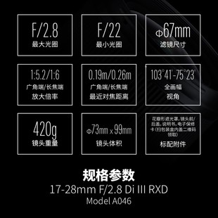2.8 III 7C2 腾龙17 RXD广角变焦微单镜头适用索尼A7M4 28mm