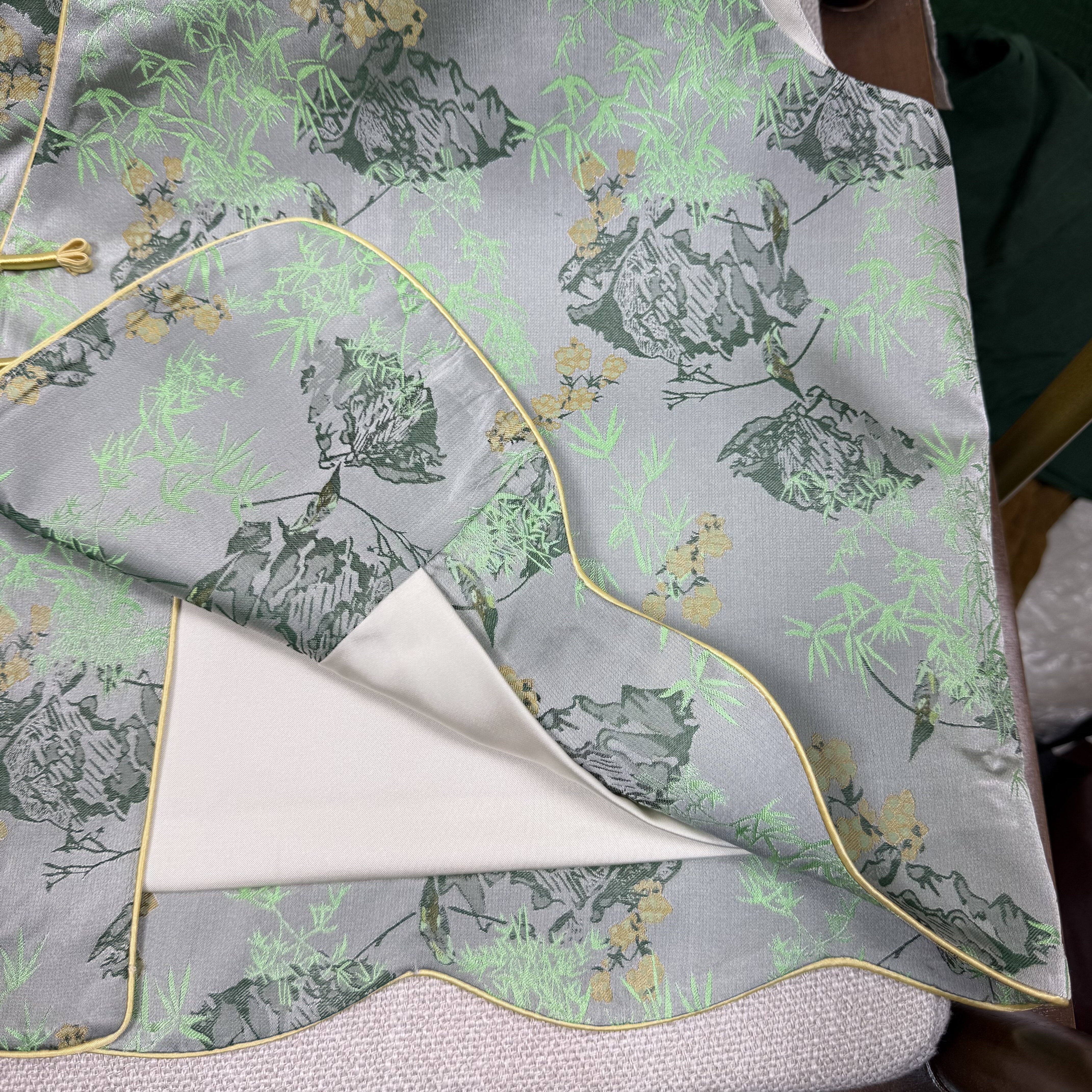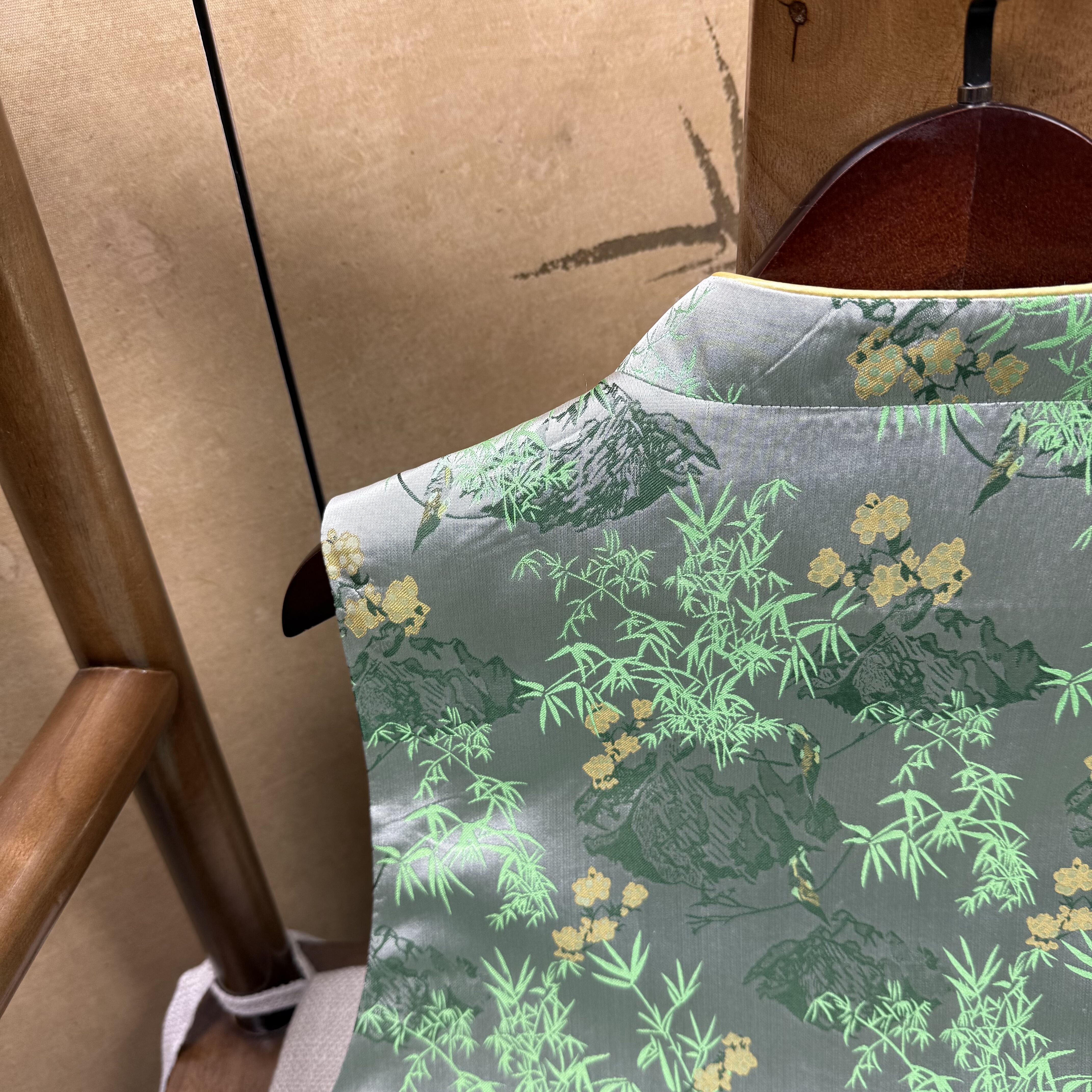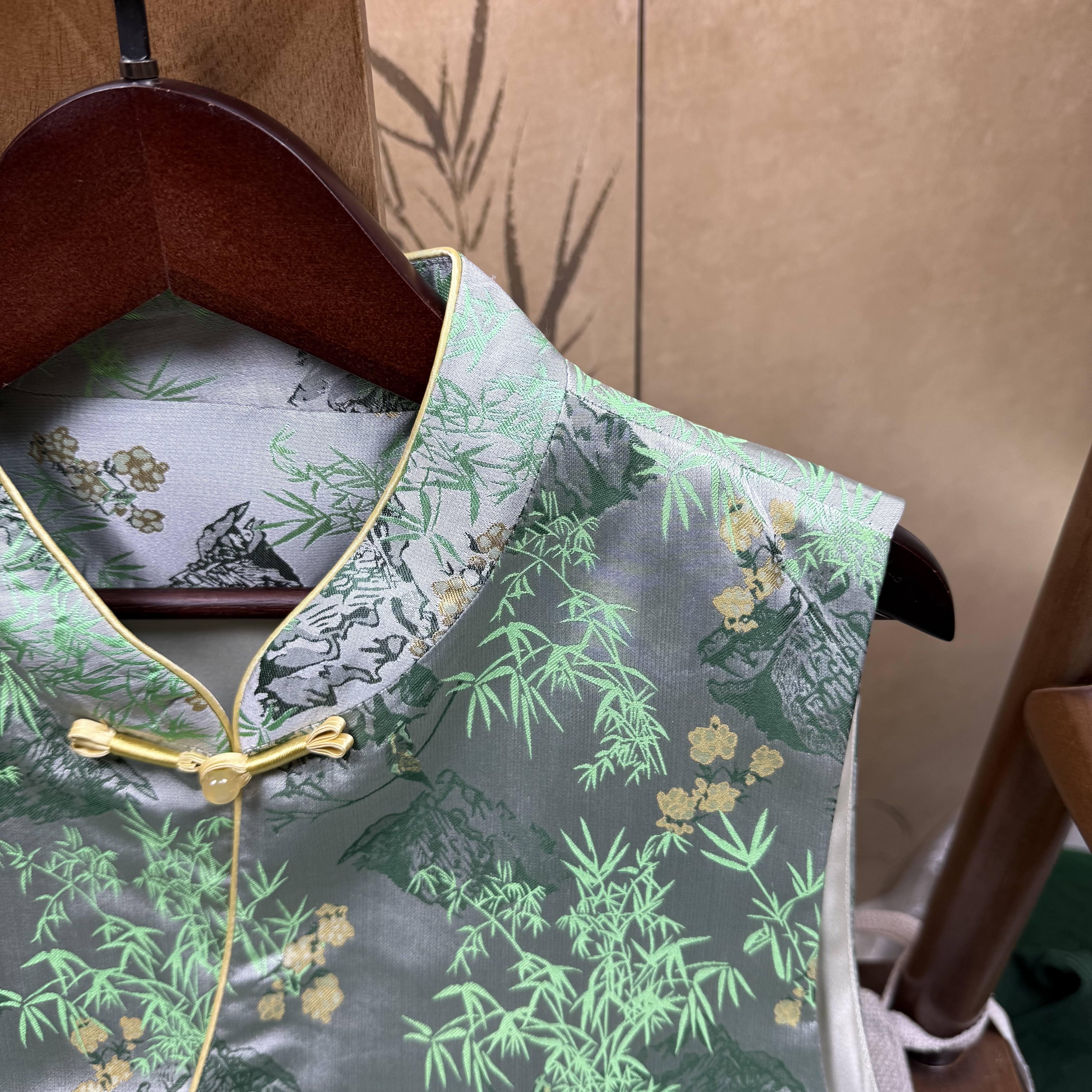 满分桑蚕丝四重维老宋锦春和景明斜襟马甲新中式 国风气质马甲绿色