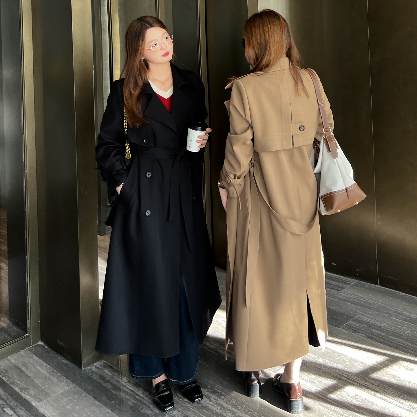 百搭大衣正肩翻领显瘦长款 秋微胖mm时尚 风衣 百分百女装 DM100大码