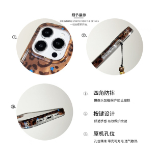 kaia 15女14pro带链条16pro全包防摔手机套 秋冬美拉德棕时髦豹纹哈喽kt适用苹果16promax手机壳iphone13新款