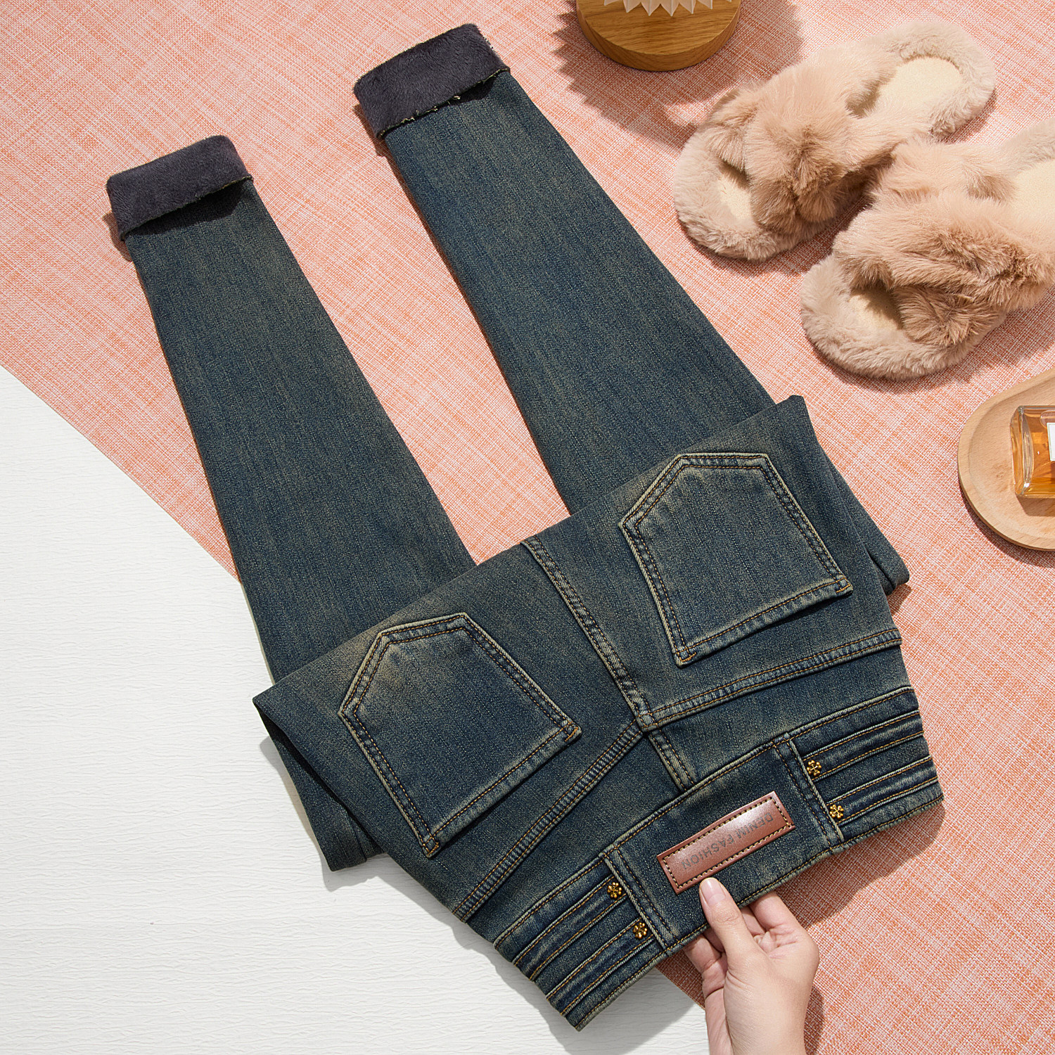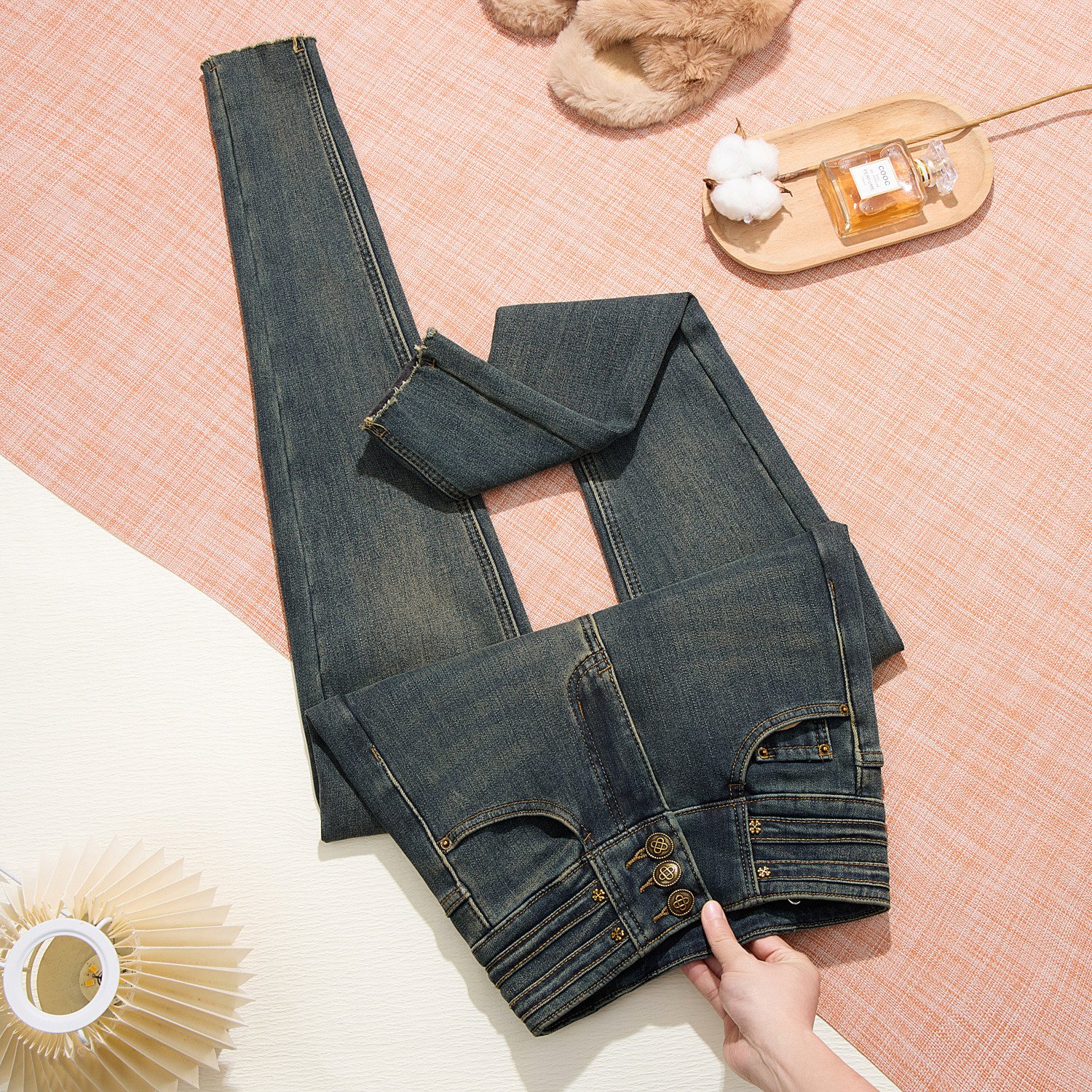 百搭显瘦弹力提臀小脚裤 女秋冬新款 女潮 蜜桃臀高腰铅笔牛仔裤 时尚
