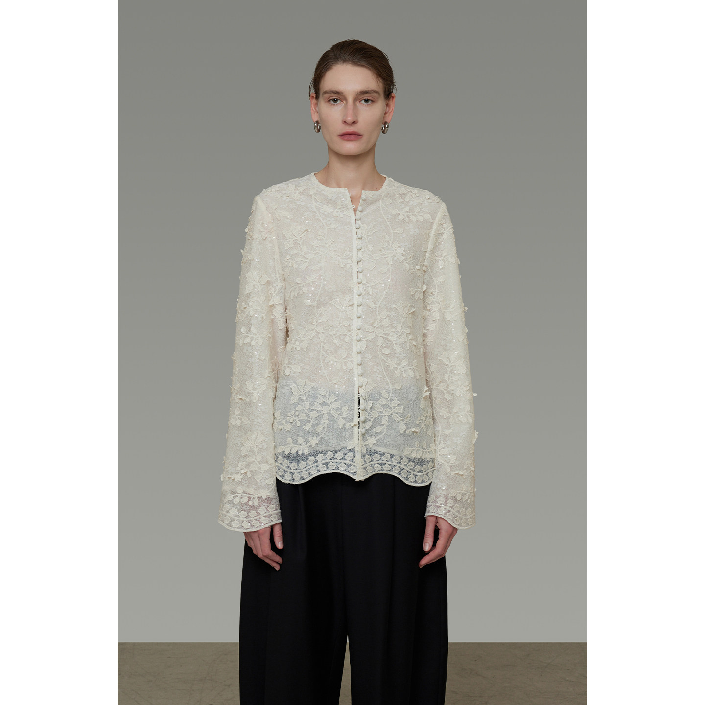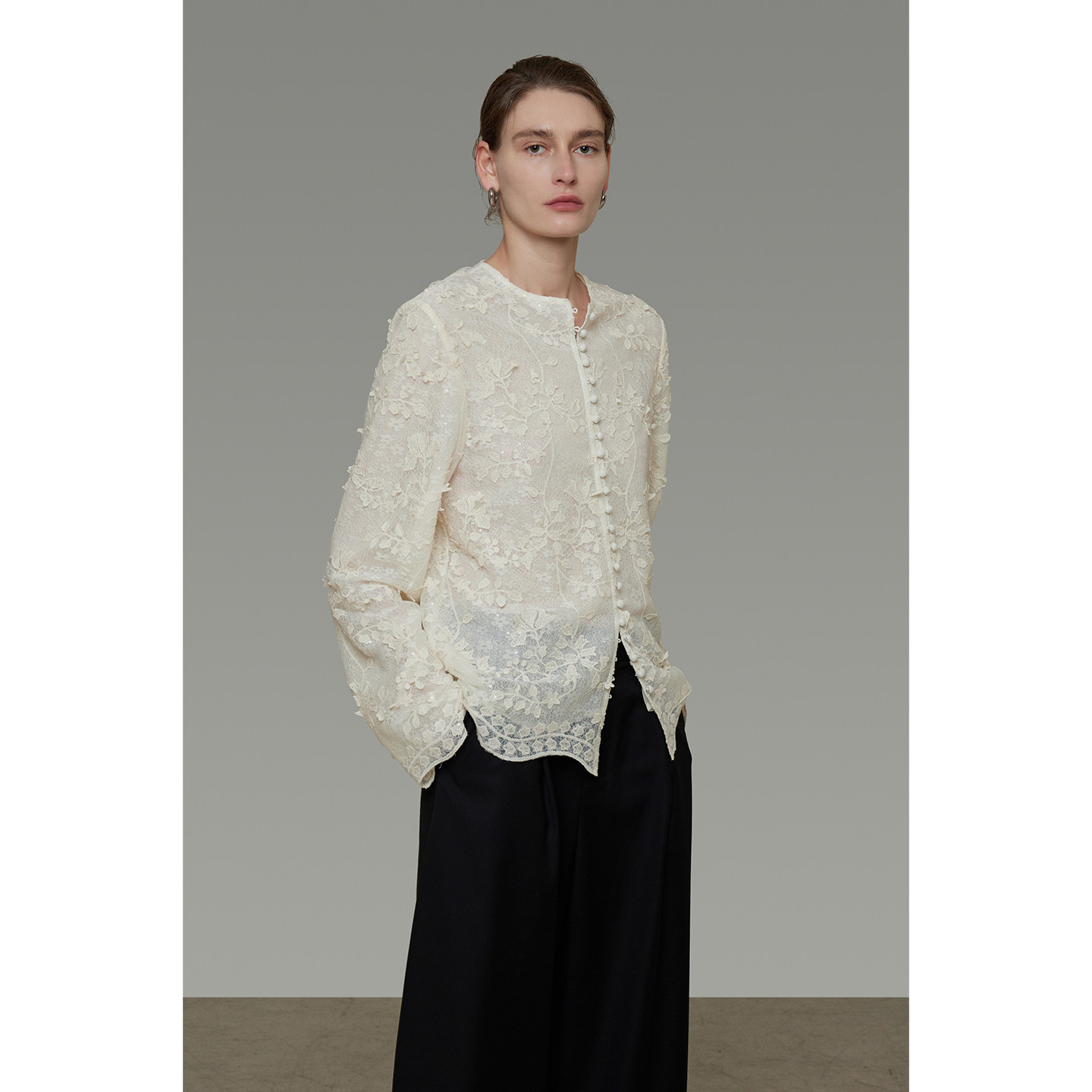 显瘦百搭高级感气质上衣 新款 UNSPOKEN立体提花宽松衬衫 女2026春装