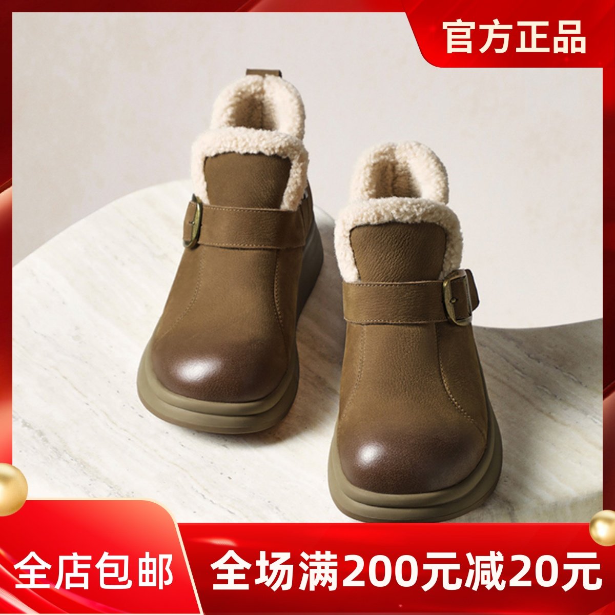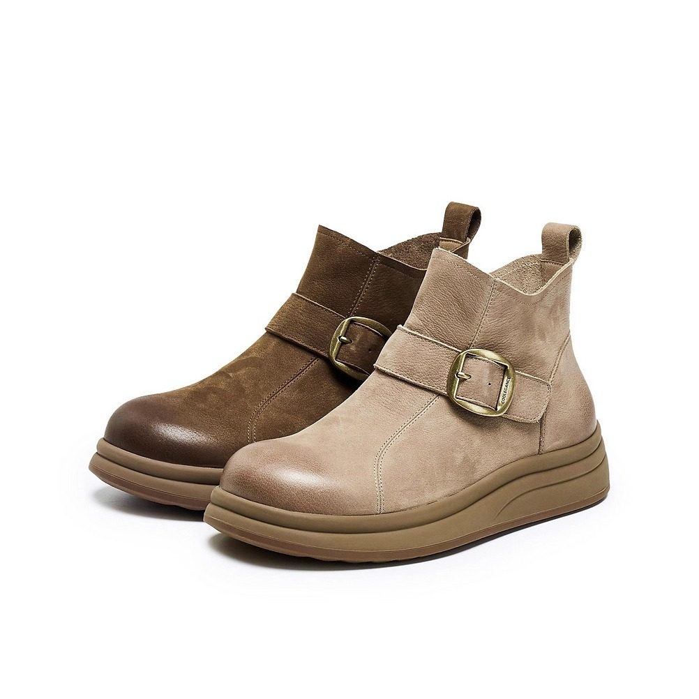 头擦色牛皮休闲厚底短靴E5D1DDD5 女靴复古鞋 专柜正品 百丽2025冬款