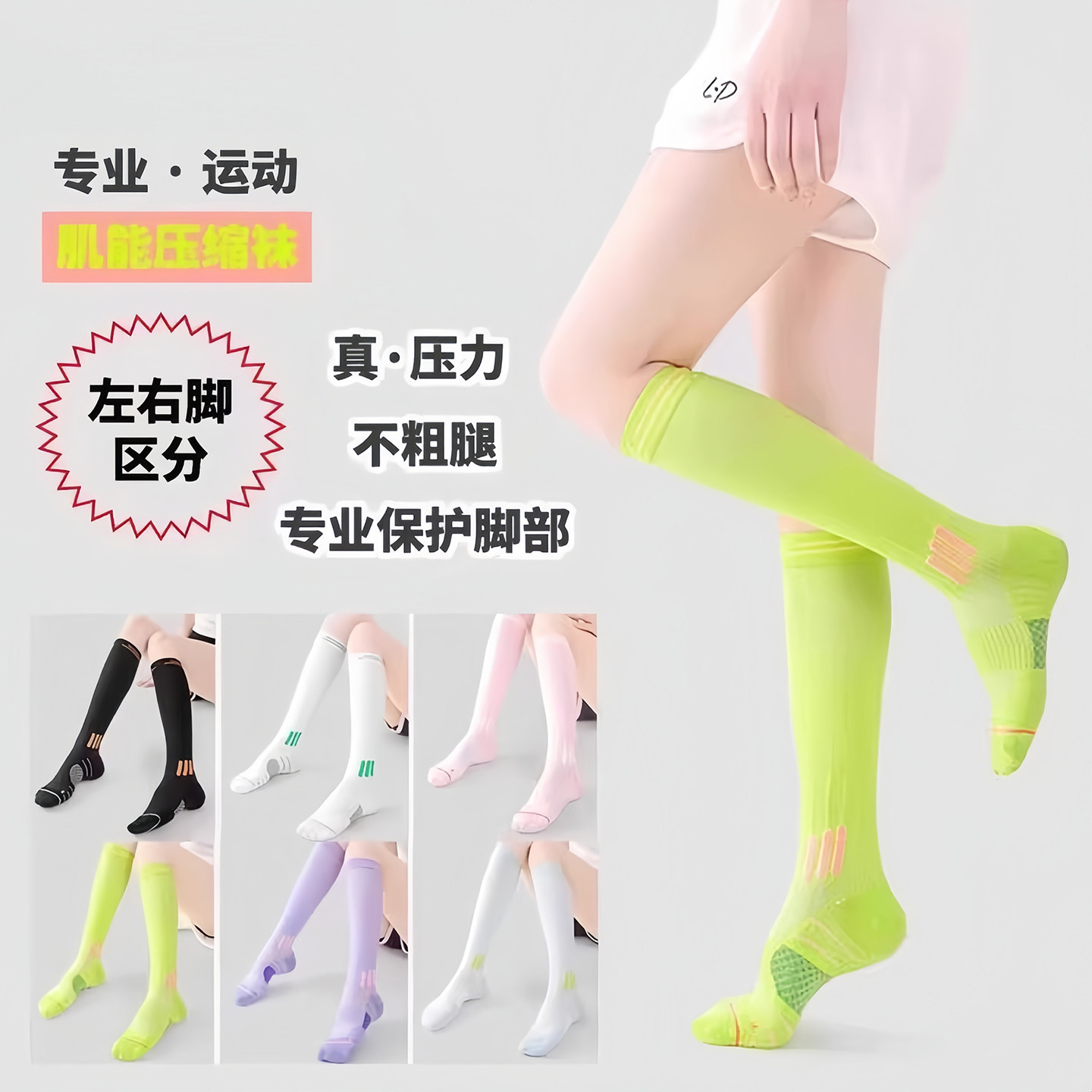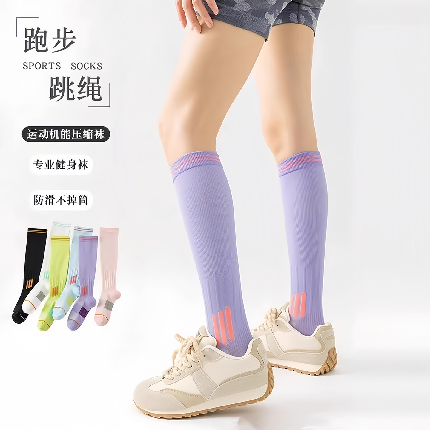 专业运动袜女四季 通用压缩健身跑步跳绳跑步速干小腿袜户外压缩袜