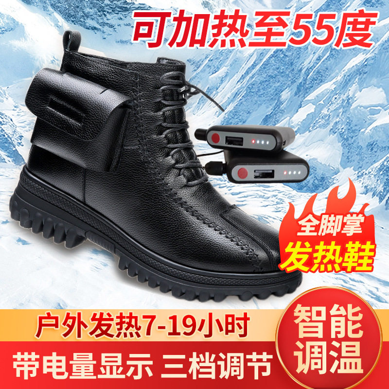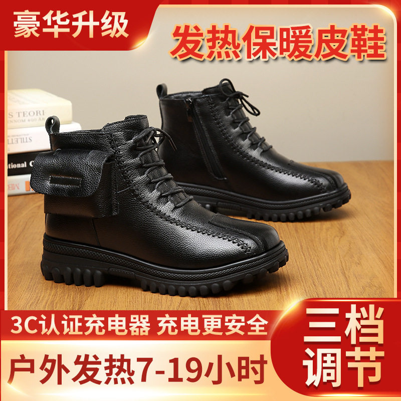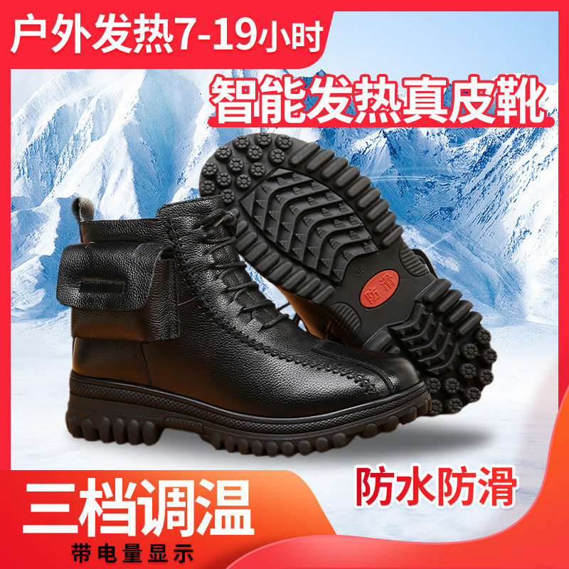 电暖鞋 真皮加绒棉鞋 马丁靴子防滑 发热可行走充电加热保暖鞋 冬新款