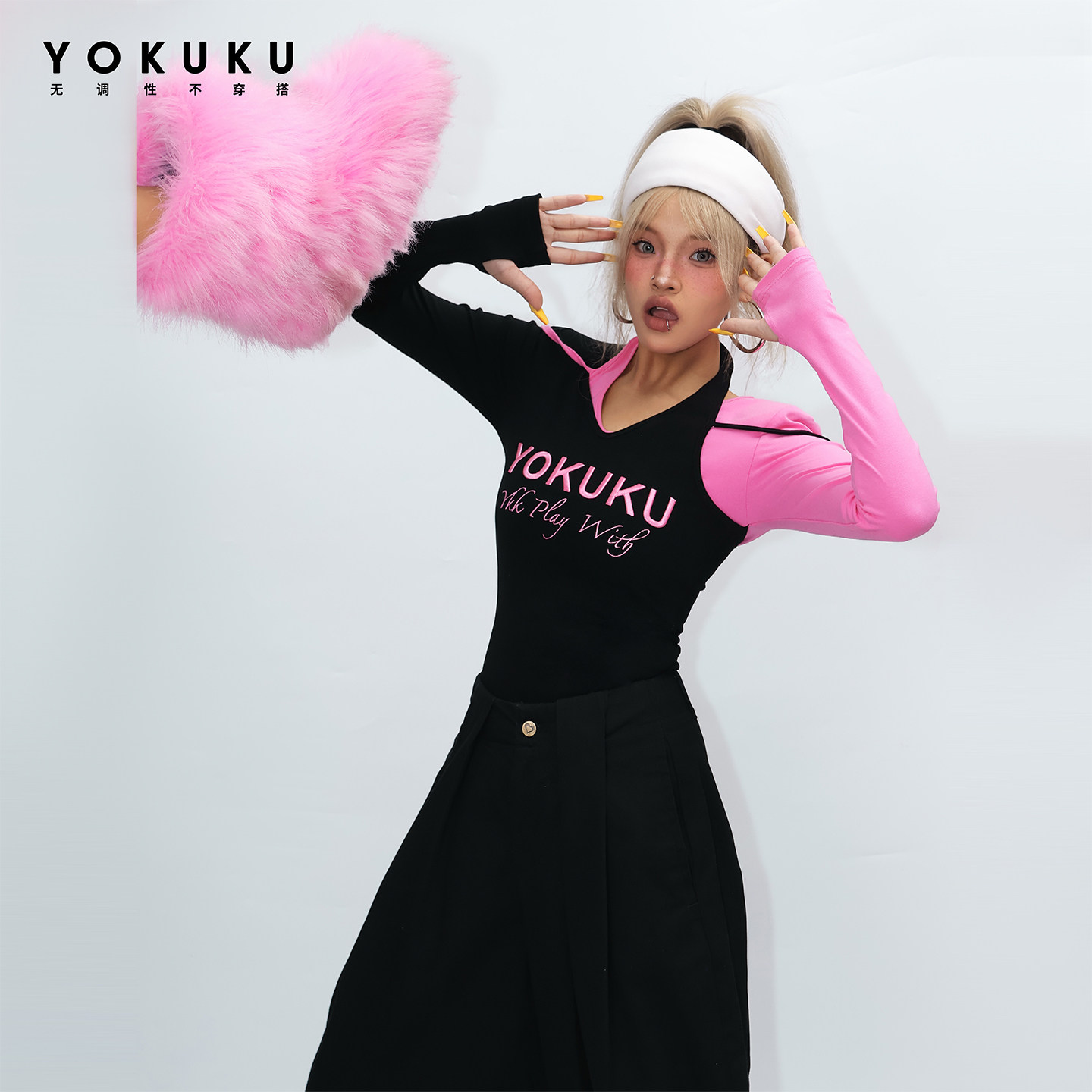 美式 哟酷酷 小众设计款 秋季 T恤女复古刺绣百搭上衣 自由小海盗